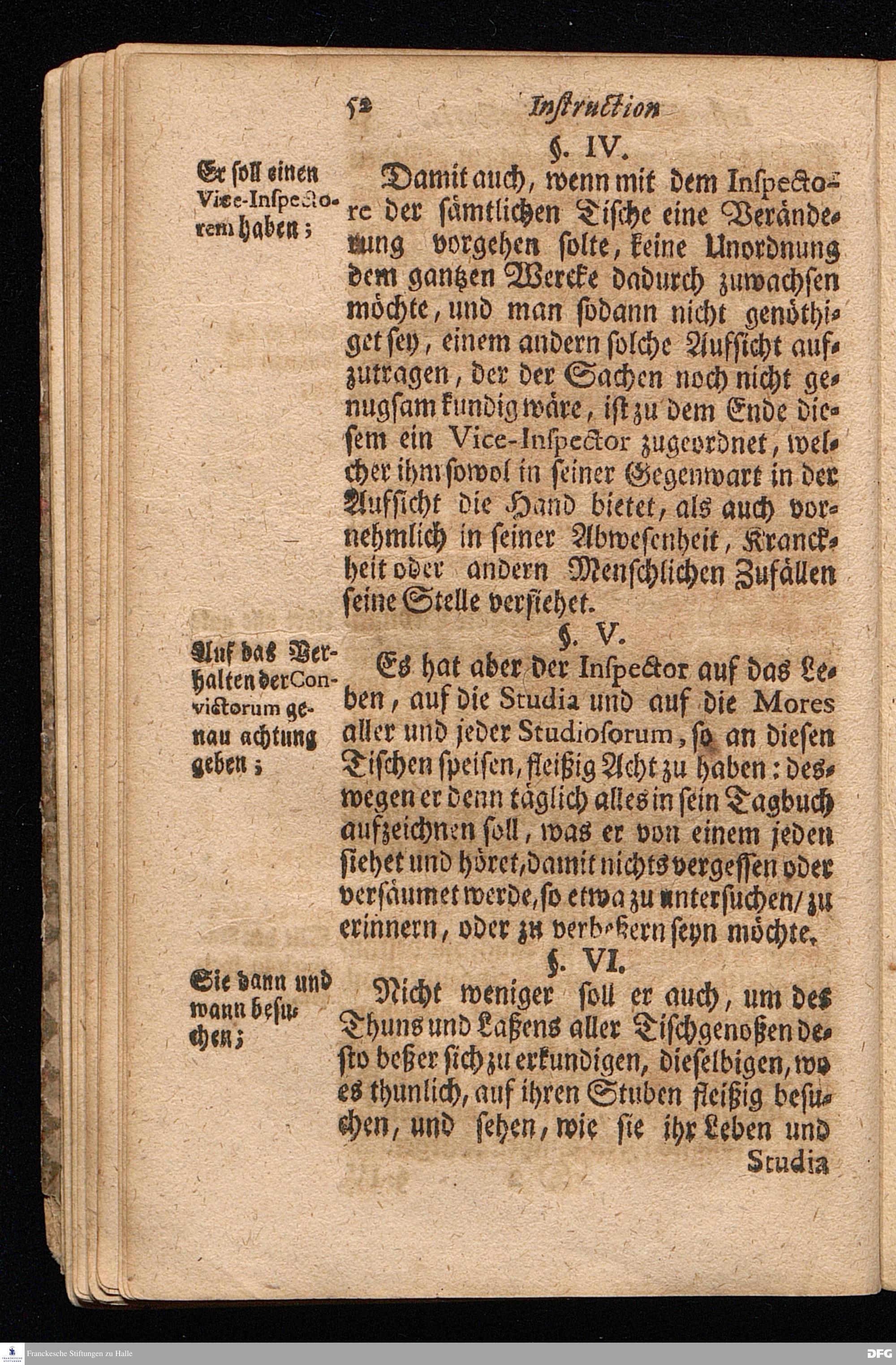 Der von GOTT in dem Wäysenhause zu Glaucha an Halle (für ietzo auf 500. Personen) Zubereitete Tisch / Nach seinem Anfang / Fortgang / gegenwärtigem Zustand und eingeführter Tisch=Ordnung kürtzlich beschrieben, mit angehängten 2. Erweckungs Reden / Deren die erste Anno 1699. [vielmehr 1700!] bey Einweihung des damaligen kleinern Speise=Saals, Die andere Anno 1711. bey Einweihung des grossen Saals gehalten worden, von August Hermann Francken / S.Theol.Prof.& Past.zu S.Ulrich / und des Gymnasii Scholarcha, h.t. Acad.Pro-Rectore. HALLE, In Verlegung des Wäysenhauses, MDCCXVII.