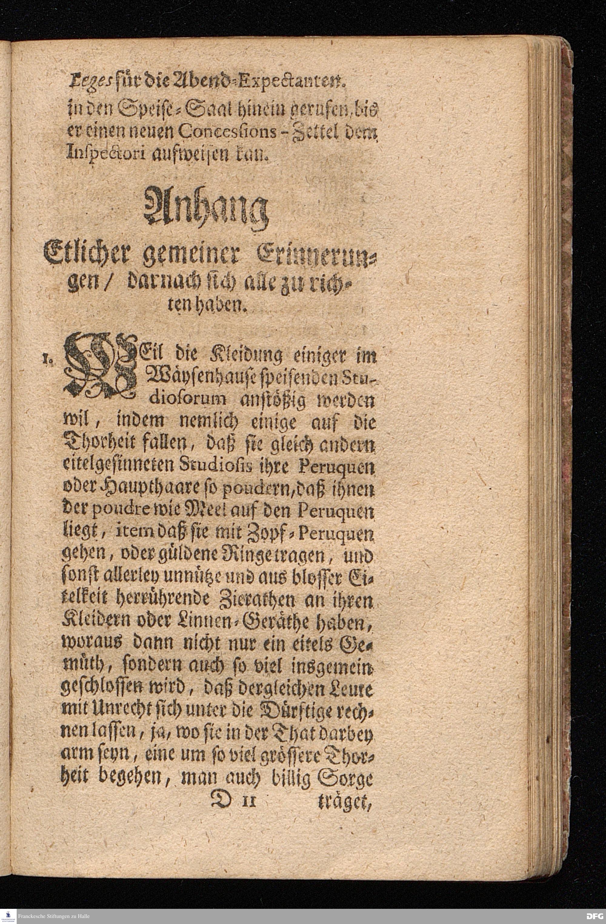 Der von GOTT in dem Wäysenhause zu Glaucha an Halle (für ietzo auf 500. Personen) Zubereitete Tisch / Nach seinem Anfang / Fortgang / gegenwärtigem Zustand und eingeführter Tisch=Ordnung kürtzlich beschrieben, mit angehängten 2. Erweckungs Reden / Deren die erste Anno 1699. [vielmehr 1700!] bey Einweihung des damaligen kleinern Speise=Saals, Die andere Anno 1711. bey Einweihung des grossen Saals gehalten worden, von August Hermann Francken / S.Theol.Prof.& Past.zu S.Ulrich / und des Gymnasii Scholarcha, h.t. Acad.Pro-Rectore. HALLE, In Verlegung des Wäysenhauses, MDCCXVII.