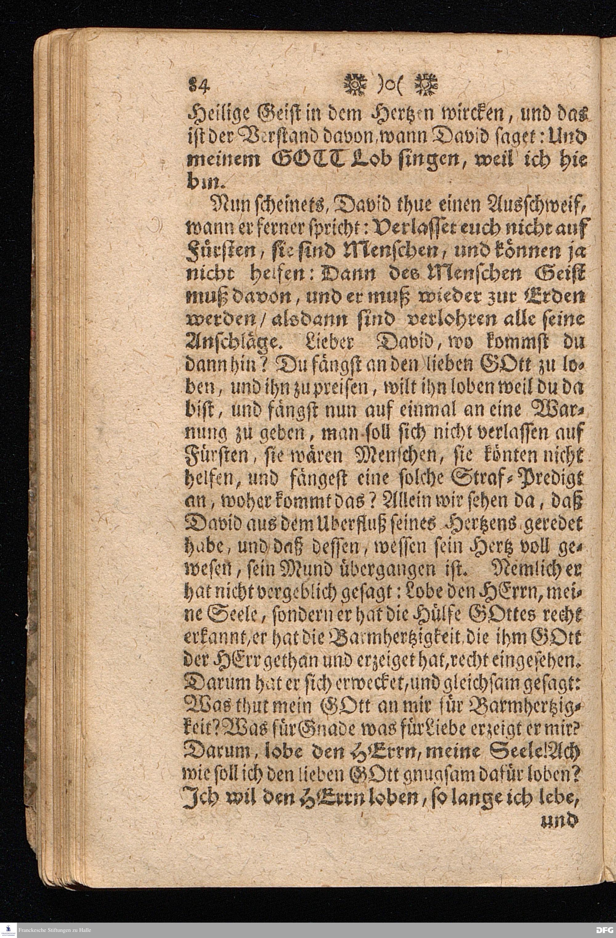 Der von GOTT in dem Wäysenhause zu Glaucha an Halle (für ietzo auf 500. Personen) Zubereitete Tisch / Nach seinem Anfang / Fortgang / gegenwärtigem Zustand und eingeführter Tisch=Ordnung kürtzlich beschrieben, mit angehängten 2. Erweckungs Reden / Deren die erste Anno 1699. [vielmehr 1700!] bey Einweihung des damaligen kleinern Speise=Saals, Die andere Anno 1711. bey Einweihung des grossen Saals gehalten worden, von August Hermann Francken / S.Theol.Prof.& Past.zu S.Ulrich / und des Gymnasii Scholarcha, h.t. Acad.Pro-Rectore. HALLE, In Verlegung des Wäysenhauses, MDCCXVII.