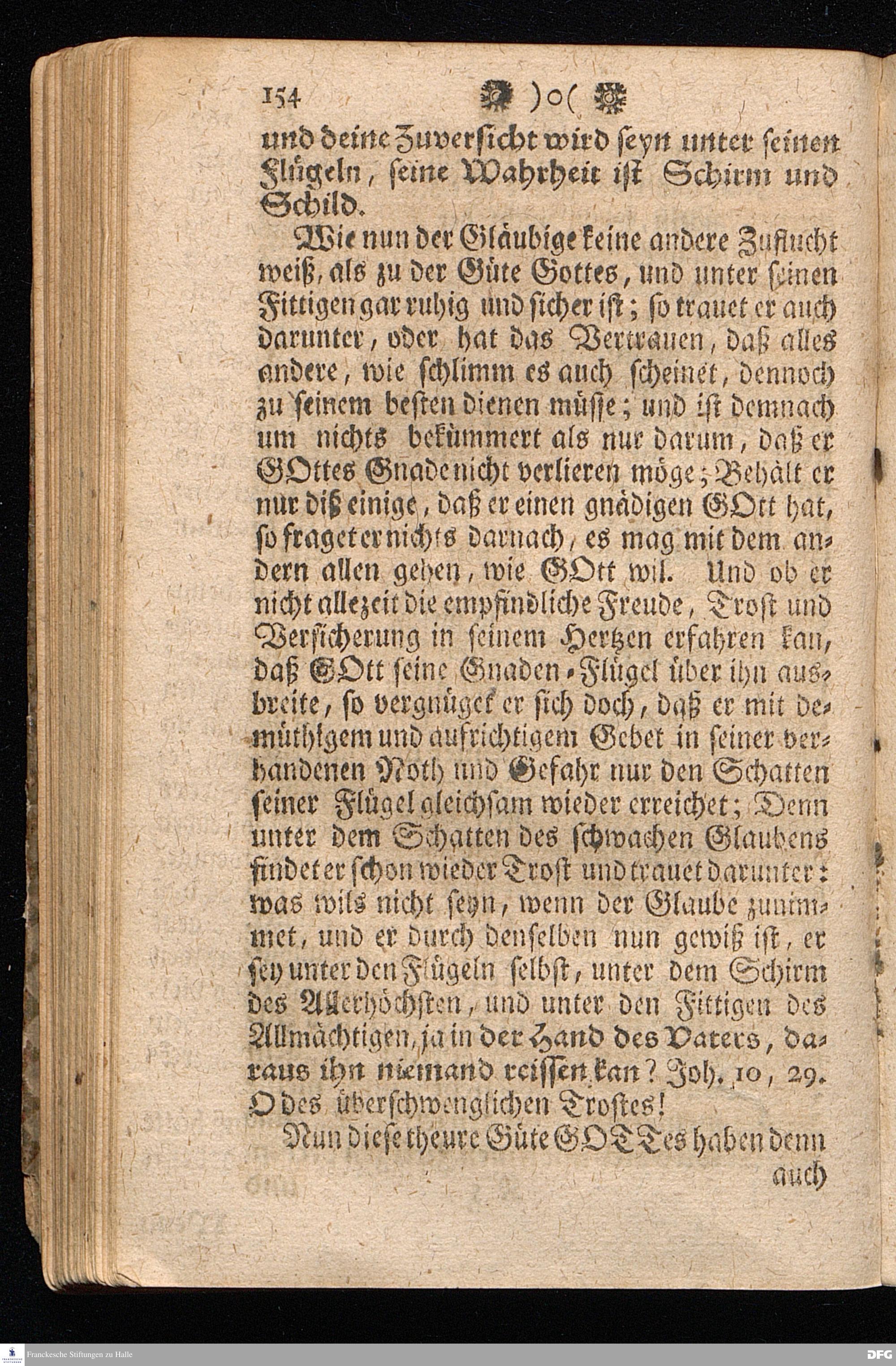 Der von GOTT in dem Wäysenhause zu Glaucha an Halle (für ietzo auf 500. Personen) Zubereitete Tisch / Nach seinem Anfang / Fortgang / gegenwärtigem Zustand und eingeführter Tisch=Ordnung kürtzlich beschrieben, mit angehängten 2. Erweckungs Reden / Deren die erste Anno 1699. [vielmehr 1700!] bey Einweihung des damaligen kleinern Speise=Saals, Die andere Anno 1711. bey Einweihung des grossen Saals gehalten worden, von August Hermann Francken / S.Theol.Prof.& Past.zu S.Ulrich / und des Gymnasii Scholarcha, h.t. Acad.Pro-Rectore. HALLE, In Verlegung des Wäysenhauses, MDCCXVII.