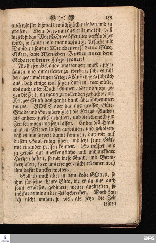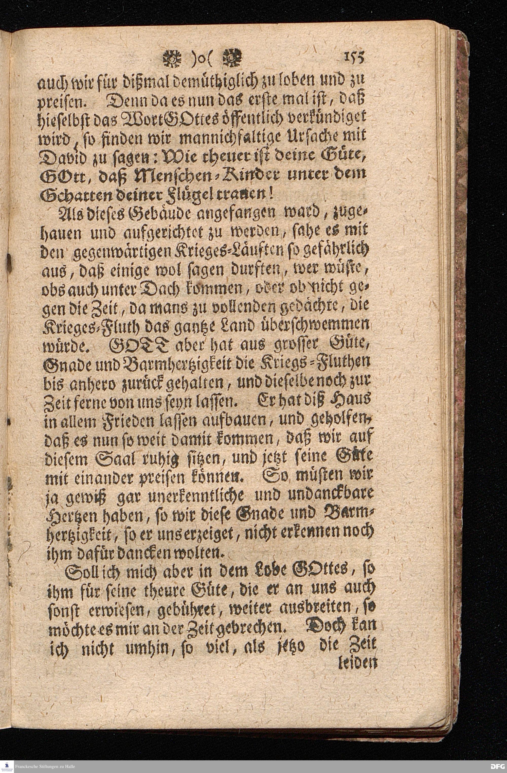 Der von GOTT in dem Wäysenhause zu Glaucha an Halle (für ietzo auf 500. Personen) Zubereitete Tisch / Nach seinem Anfang / Fortgang / gegenwärtigem Zustand und eingeführter Tisch=Ordnung kürtzlich beschrieben, mit angehängten 2. Erweckungs Reden / Deren die erste Anno 1699. [vielmehr 1700!] bey Einweihung des damaligen kleinern Speise=Saals, Die andere Anno 1711. bey Einweihung des grossen Saals gehalten worden, von August Hermann Francken / S.Theol.Prof.& Past.zu S.Ulrich / und des Gymnasii Scholarcha, h.t. Acad.Pro-Rectore. HALLE, In Verlegung des Wäysenhauses, MDCCXVII.