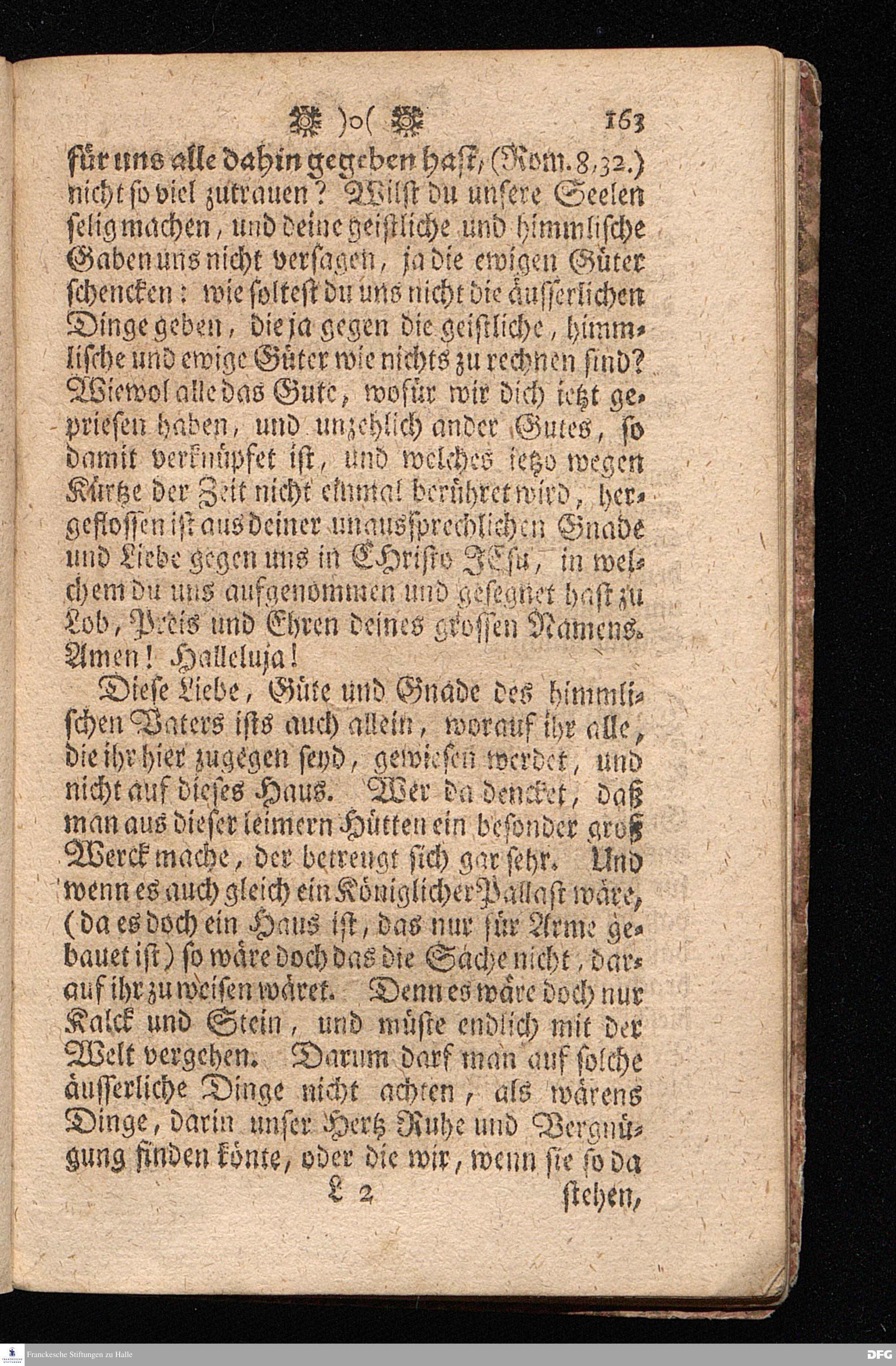Der von GOTT in dem Wäysenhause zu Glaucha an Halle (für ietzo auf 500. Personen) Zubereitete Tisch / Nach seinem Anfang / Fortgang / gegenwärtigem Zustand und eingeführter Tisch=Ordnung kürtzlich beschrieben, mit angehängten 2. Erweckungs Reden / Deren die erste Anno 1699. [vielmehr 1700!] bey Einweihung des damaligen kleinern Speise=Saals, Die andere Anno 1711. bey Einweihung des grossen Saals gehalten worden, von August Hermann Francken / S.Theol.Prof.& Past.zu S.Ulrich / und des Gymnasii Scholarcha, h.t. Acad.Pro-Rectore. HALLE, In Verlegung des Wäysenhauses, MDCCXVII.