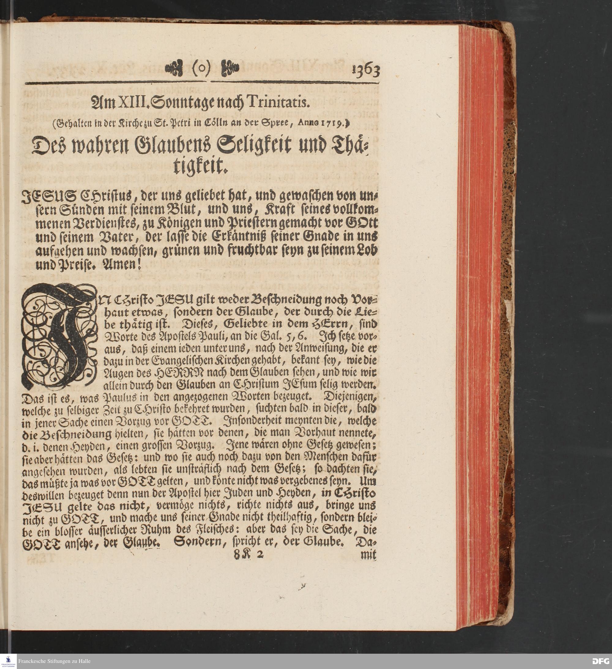 August Hermann Franckens, S.Theol.Prof.und Past. Sonn= und Fest=Tags=Predigten / Welche Theils in Halle, theils an verschiedenen auswärtigen Oertern, von wichtigen und auserlesenen Materien gehalten worden, Nebst Vorbereitung auf die hohen Feste und nützlichen Registern. Dritte Auflage. HALLE, gedruckt und verlegt im Wäysen=Hause MDCCXL. Mit Königl.Preuß.und Churfl.Brandenb.Privileg.