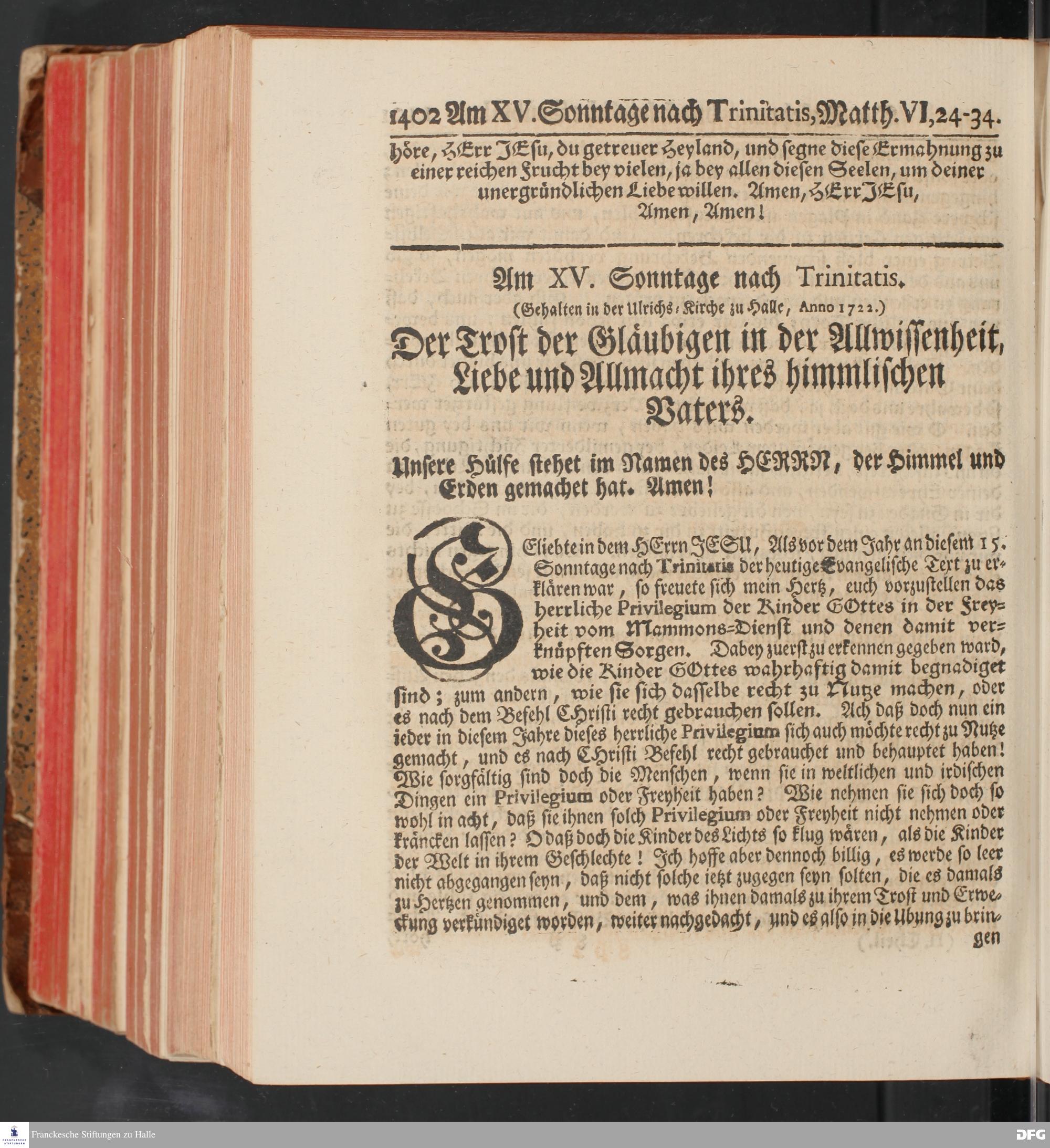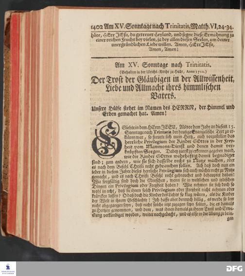 August Hermann Franckens, S.Theol.Prof.und Past. Sonn= und Fest=Tags=Predigten / Welche Theils in Halle, theils an verschiedenen auswärtigen Oertern, von wichtigen und auserlesenen Materien gehalten worden, Nebst Vorbereitung auf die hohen Feste und nützlichen Registern. Dritte Auflage. HALLE, gedruckt und verlegt im Wäysen=Hause MDCCXL. Mit Königl.Preuß.und Churfl.Brandenb.Privileg.
