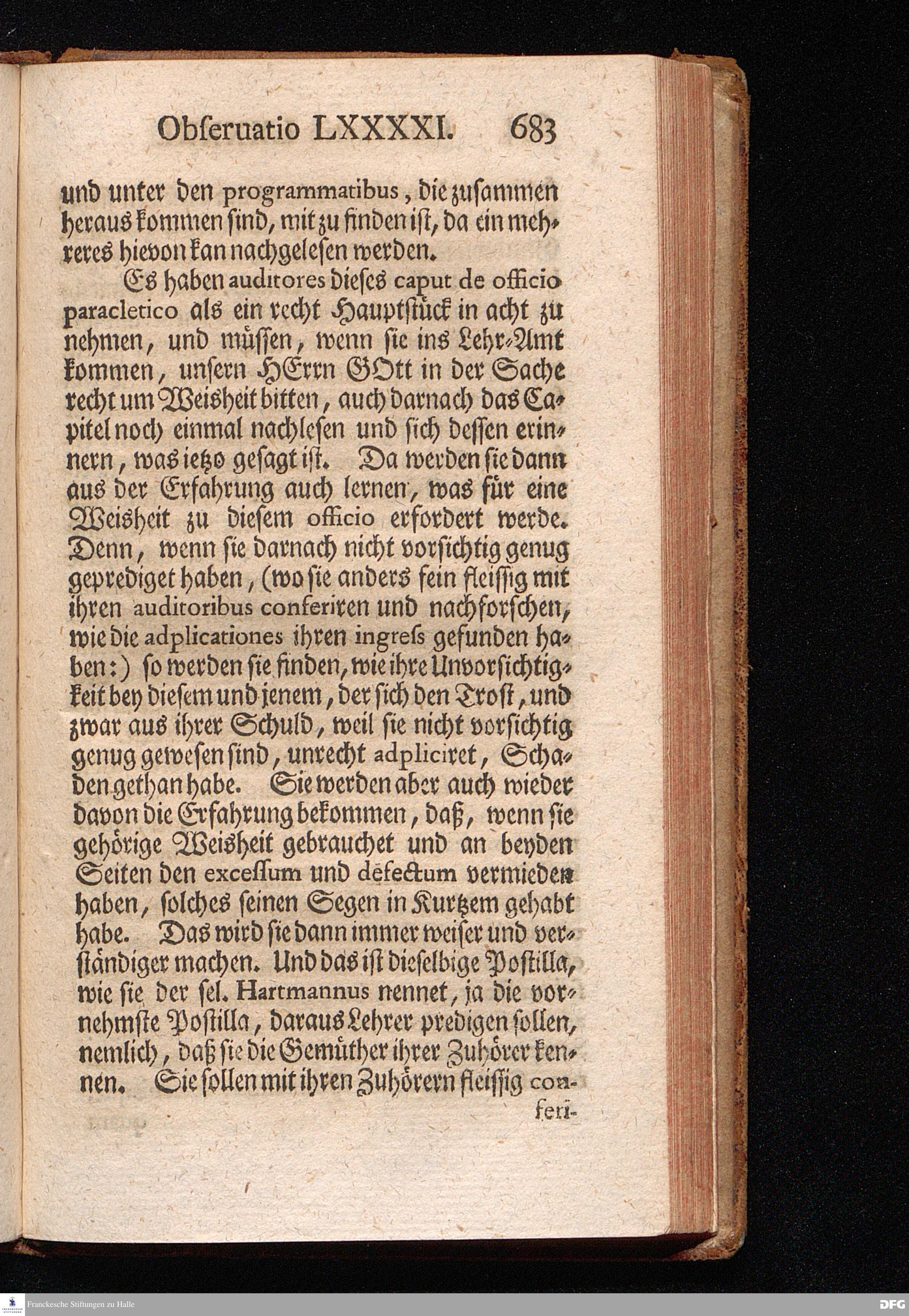 August Hermann Franckens, Weyl.S.Theol. Prof. Past. Vlric. et Schol.COLLEGIVM PASTORALE über D. Ioh. Ludouici Hartmanni Pastorale Euangelicum. Erster Theil; Nebst Johann Eberlins, ersten Predigers des Evangelii zu Ulm, Send=Schreiben an Johann Jacob, Pfarrern zu Leipheim im Ulmer=Gebiet, Wie sich ein Diener GOttes Worts in all seinem Thun halten soll, und sonderlich gegen denen, welchen das Evangelium zuvor nicht geprediget ist, daß sie sich nicht ärgern; Mit einer Vorrede herausgegeben von Gotthilf August Francken, S.Theol.Doct.und Prof.Publ.Ord.der ersten Dioeces des Saal-Creyses Insp.und Pred.zur L.Fr. HALLE, in Verlegung des Wäysenhauses. 1741.
