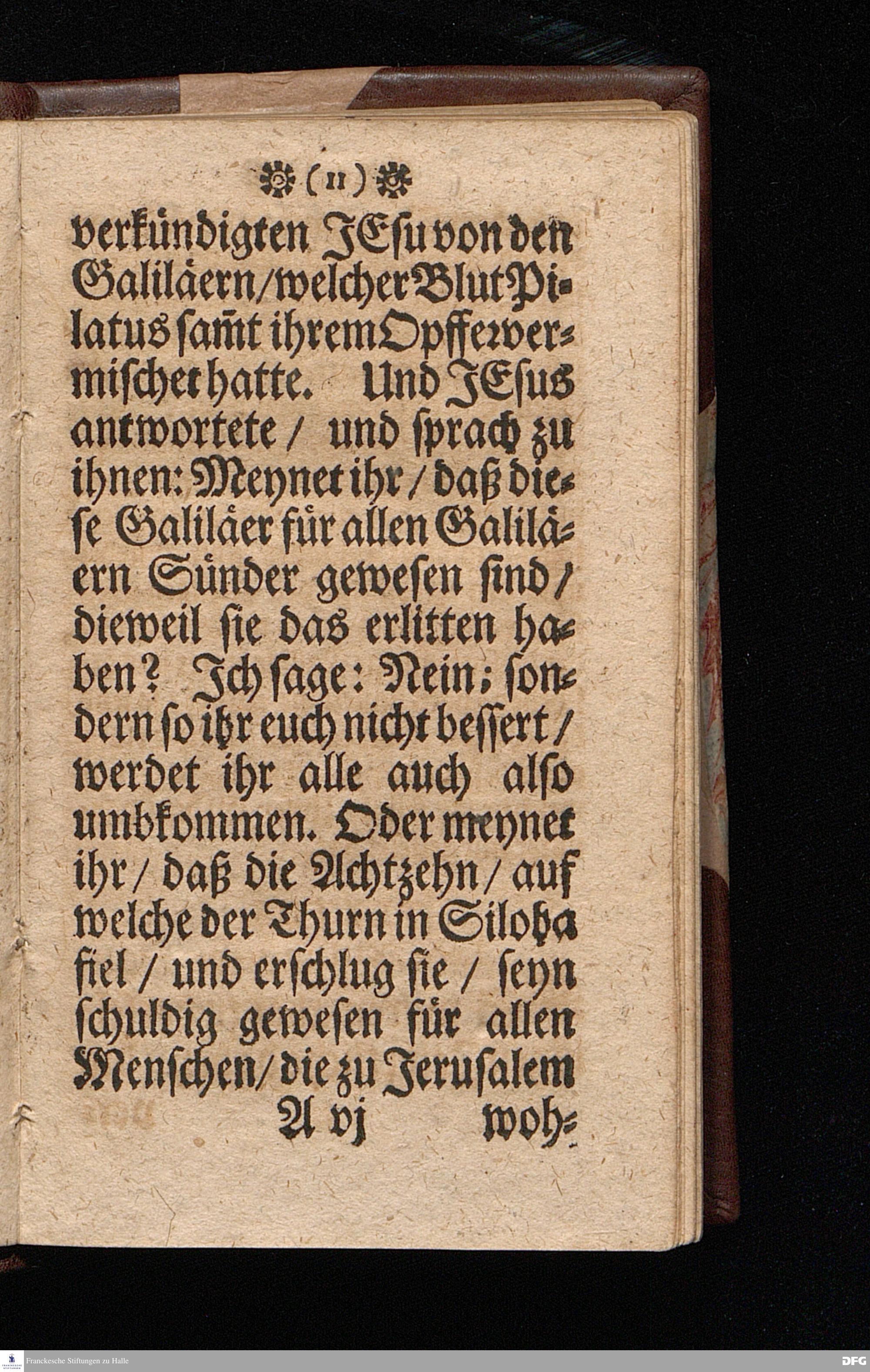 Die Vorboten Der schweren Gerichte Gottes / In einer Leichen=Predigt über Luc.XIII. v.1--9. Beym Begräbnis etlicher von einem Sand=Berge erschlagenen Personen / Den 9.April.1698. In der S.Georgen=Kirche / zu Glaucha an Halle / vorgestellt von M.August Hermann Francken / Gr.& OO.LL.P.P.& Past.Glauch. Anno 1698.