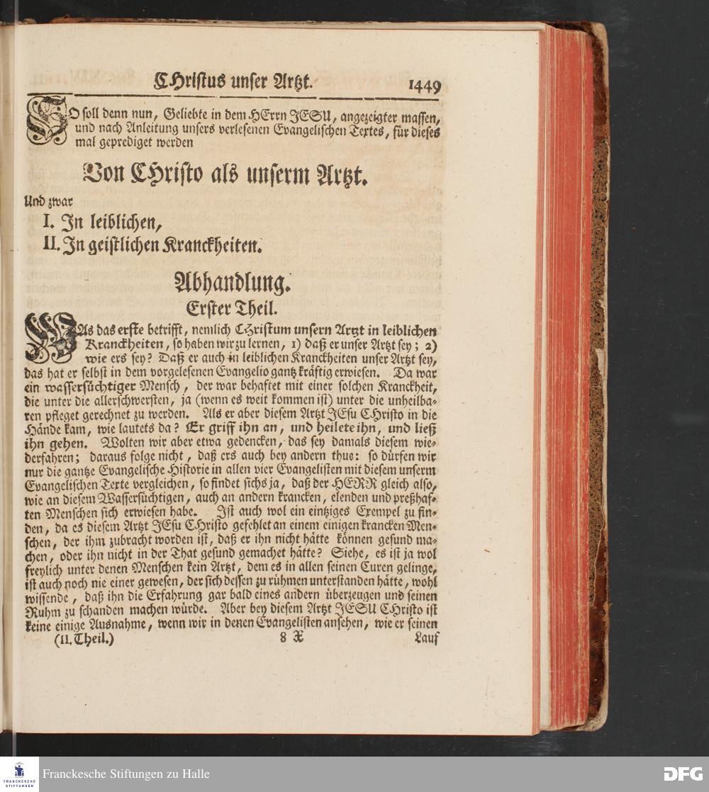 August Hermann Franckens, S.Theol.Prof.und Past. Sonn= und Fest=Tags=Predigten / Welche Theils in Halle, theils an verschiedenen auswärtigen Oertern, von wichtigen und auserlesenen Materien gehalten worden, Nebst Vorbereitung auf die hohen Feste und nützlichen Registern. Dritte Auflage. HALLE, gedruckt und verlegt im Wäysen=Hause MDCCXL. Mit Königl.Preuß.und Churfl.Brandenb.Privileg.