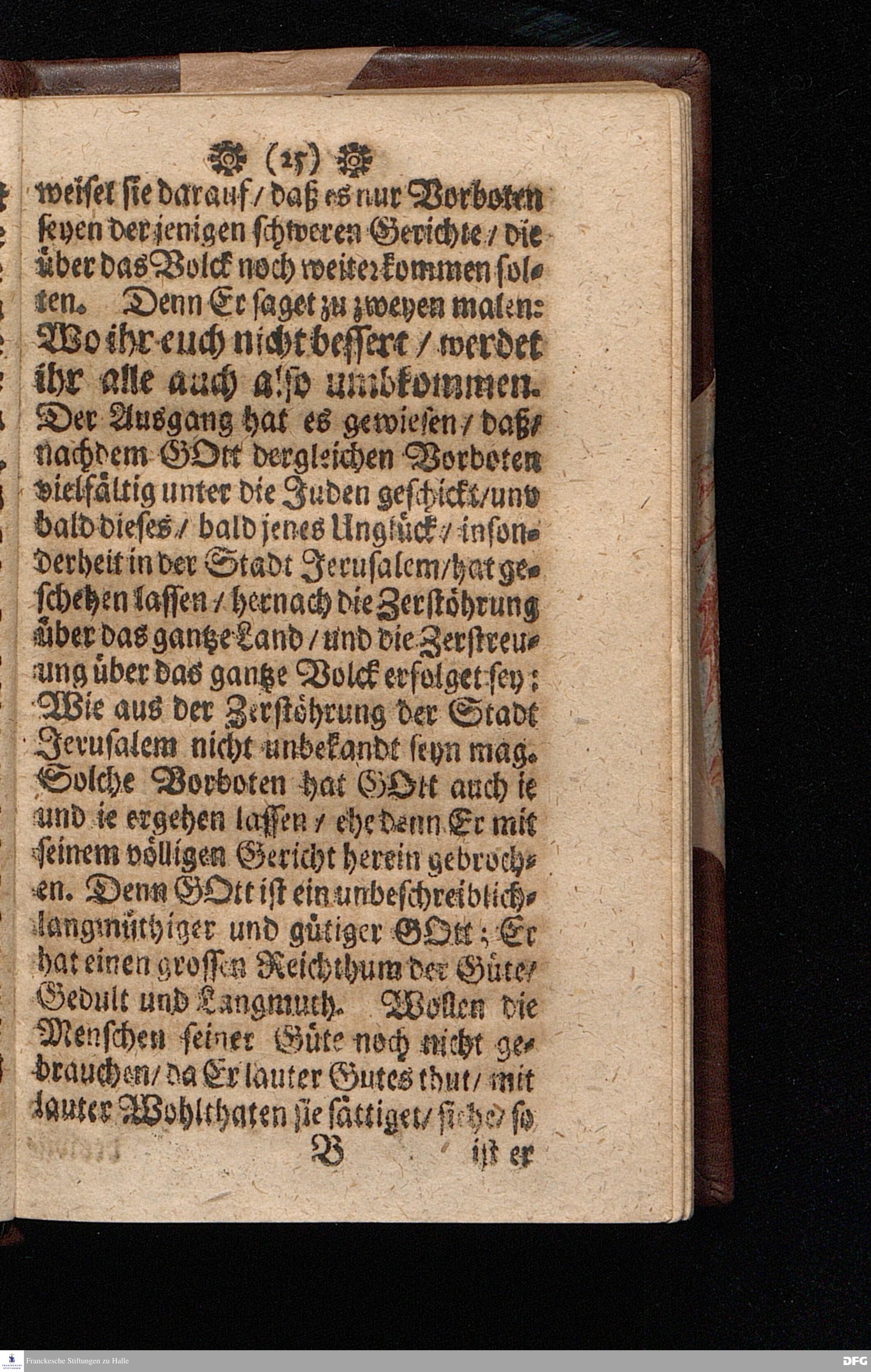 Die Vorboten Der schweren Gerichte Gottes / In einer Leichen=Predigt über Luc.XIII. v.1--9. Beym Begräbnis etlicher von einem Sand=Berge erschlagenen Personen / Den 9.April.1698. In der S.Georgen=Kirche / zu Glaucha an Halle / vorgestellt von M.August Hermann Francken / Gr.& OO.LL.P.P.& Past.Glauch. Anno 1698.