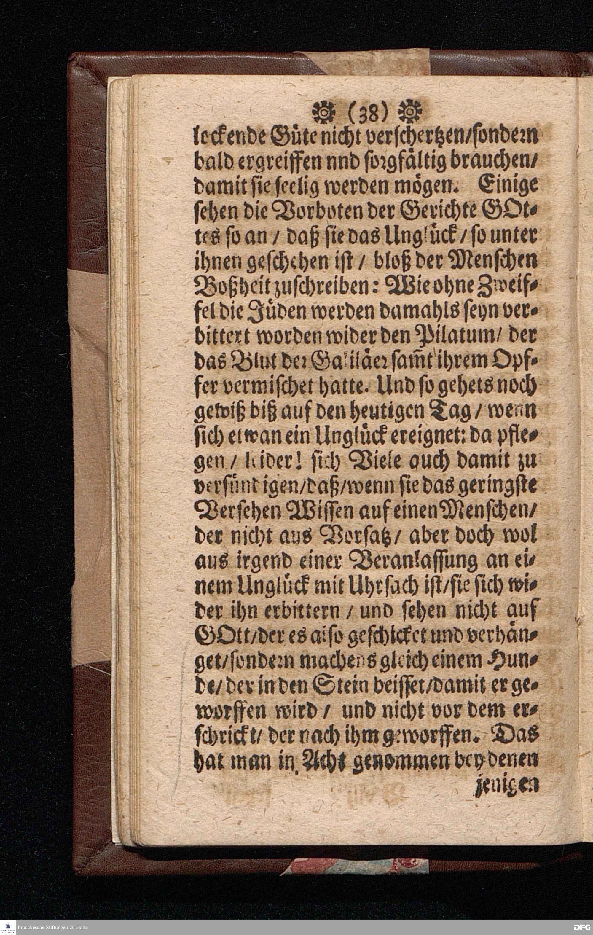Die Vorboten Der schweren Gerichte Gottes / In einer Leichen=Predigt über Luc.XIII. v.1--9. Beym Begräbnis etlicher von einem Sand=Berge erschlagenen Personen / Den 9.April.1698. In der S.Georgen=Kirche / zu Glaucha an Halle / vorgestellt von M.August Hermann Francken / Gr.& OO.LL.P.P.& Past.Glauch. Anno 1698.