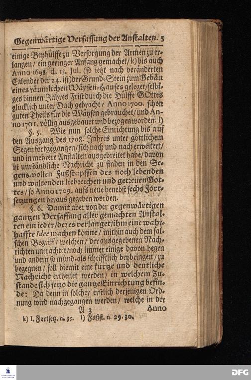 Kurtze und deutich[!] Nachricht / in welcher Verfassung Die zu Glaucha an Halle Beydes zur Erziehung der Jugend / und zur Aufnehmung / Auch nöthiger Verpflegung der Dürfftigen gemachte Anstalten Sich ietziger Zeit im Julio 1709. befinden / zu künfftiger VII.Fortsetzung vorläuffig ertheilet / von August Hermann Francken / S.Theol.Prof.und Past. HALLE / im Wäysen=Hause.