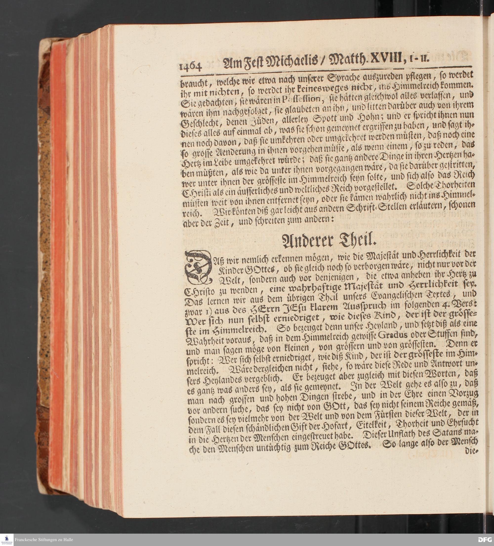 August Hermann Franckens, S.Theol.Prof.und Past. Sonn= und Fest=Tags=Predigten / Welche Theils in Halle, theils an verschiedenen auswärtigen Oertern, von wichtigen und auserlesenen Materien gehalten worden, Nebst Vorbereitung auf die hohen Feste und nützlichen Registern. Dritte Auflage. HALLE, gedruckt und verlegt im Wäysen=Hause MDCCXL. Mit Königl.Preuß.und Churfl.Brandenb.Privileg.