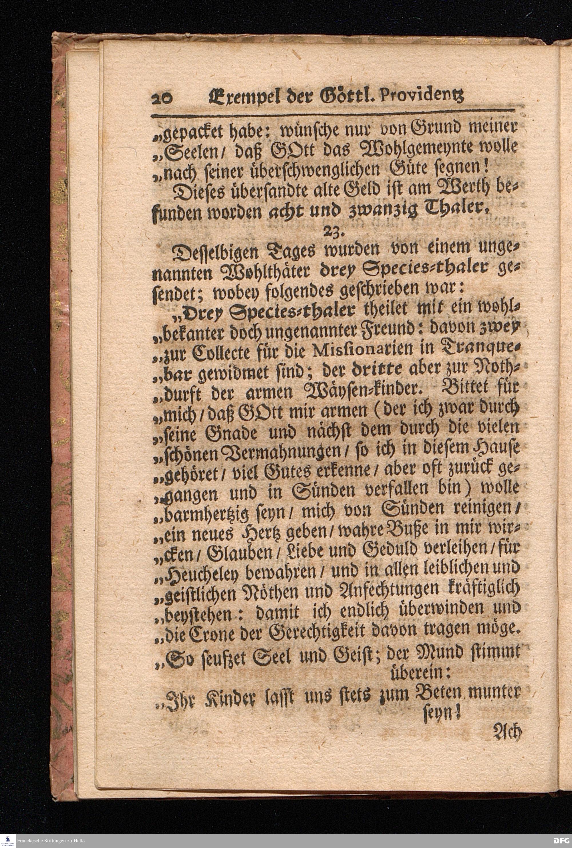 Die VI. Fortsetzung Der Wahrhaften und umständlichen Nachricht Vom Wäysen=Hause und übrigen Anstalten zu Glaucha vor Halle/ Bis zu Ende des Jahres Anno 1708. In einem abermaligen Send=Schreiben an den Hoch=Wohlgebohrnen Herrn, Herrn Carl Hildebrand, Freyherrn von Canstein, auf Canstein, Schönberg und Neukirchen ec. Erb=Herrn, abgefasset, Von August Hermann Francken/ S. Theol. Prof. zu Halle, und Past. zu Glaucha vor Halle. HALLE, im Wäysen=Hause. 1709