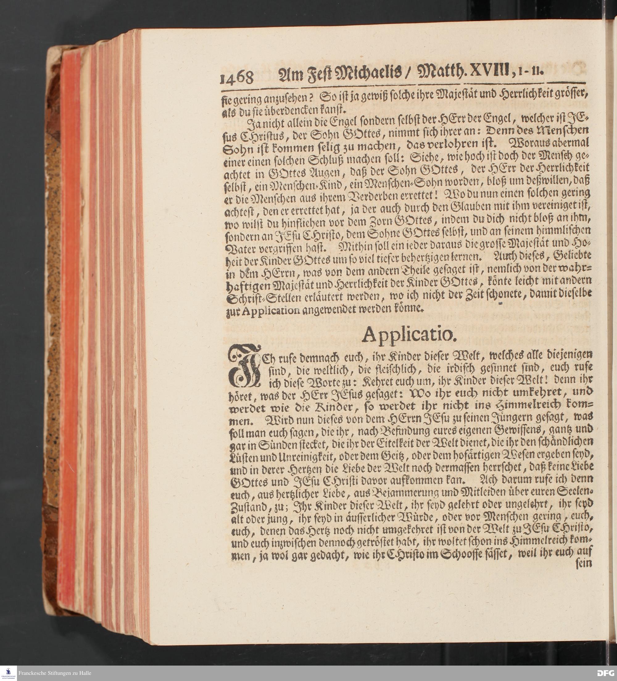 August Hermann Franckens, S.Theol.Prof.und Past. Sonn= und Fest=Tags=Predigten / Welche Theils in Halle, theils an verschiedenen auswärtigen Oertern, von wichtigen und auserlesenen Materien gehalten worden, Nebst Vorbereitung auf die hohen Feste und nützlichen Registern. Dritte Auflage. HALLE, gedruckt und verlegt im Wäysen=Hause MDCCXL. Mit Königl.Preuß.und Churfl.Brandenb.Privileg.