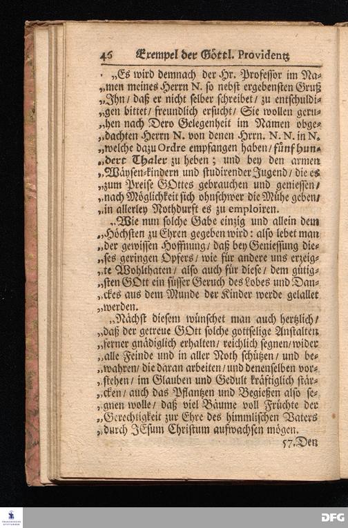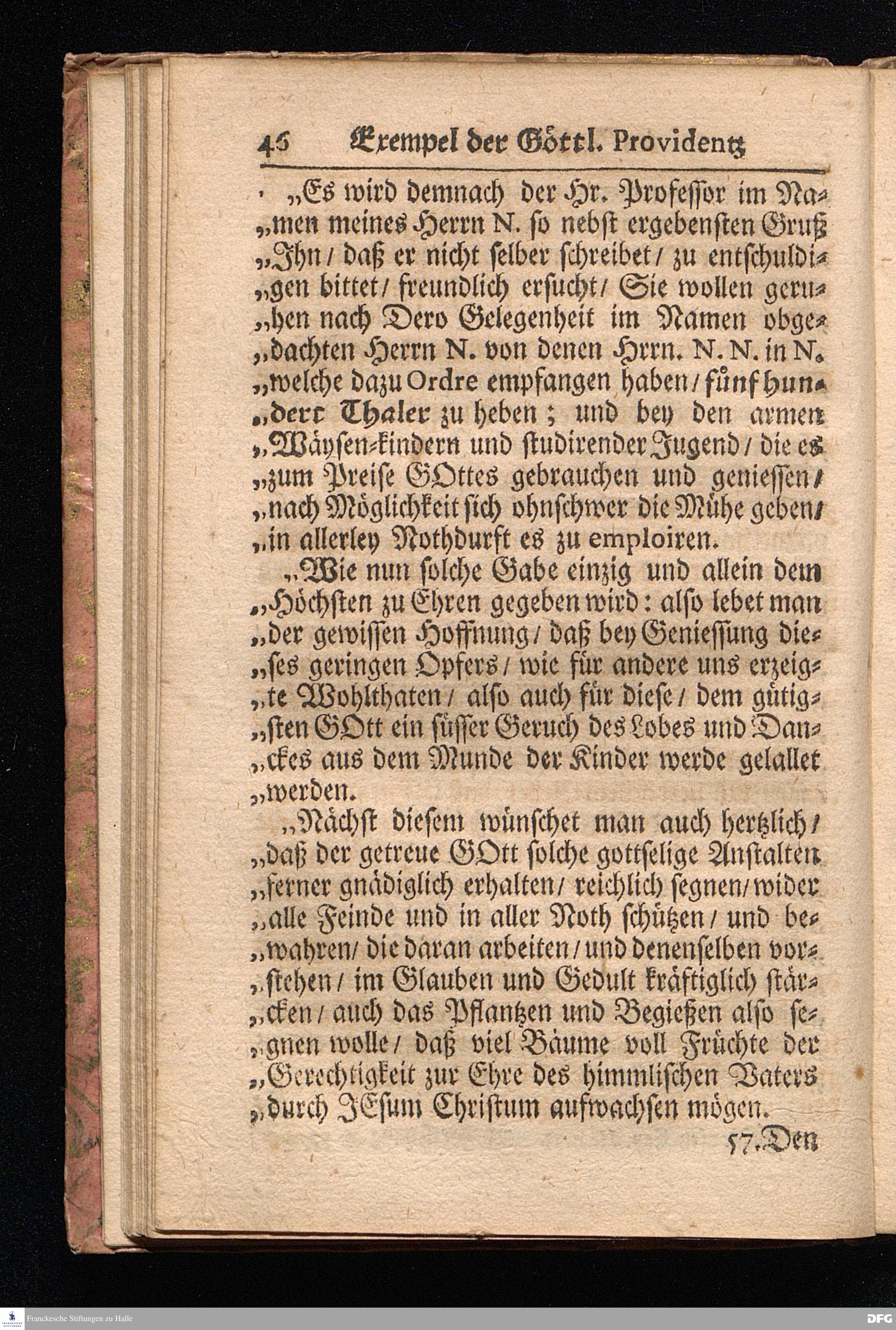 Die VI. Fortsetzung Der Wahrhaften und umständlichen Nachricht Vom Wäysen=Hause und übrigen Anstalten zu Glaucha vor Halle/ Bis zu Ende des Jahres Anno 1708. In einem abermaligen Send=Schreiben an den Hoch=Wohlgebohrnen Herrn, Herrn Carl Hildebrand, Freyherrn von Canstein, auf Canstein, Schönberg und Neukirchen ec. Erb=Herrn, abgefasset, Von August Hermann Francken/ S. Theol. Prof. zu Halle, und Past. zu Glaucha vor Halle. HALLE, im Wäysen=Hause. 1709