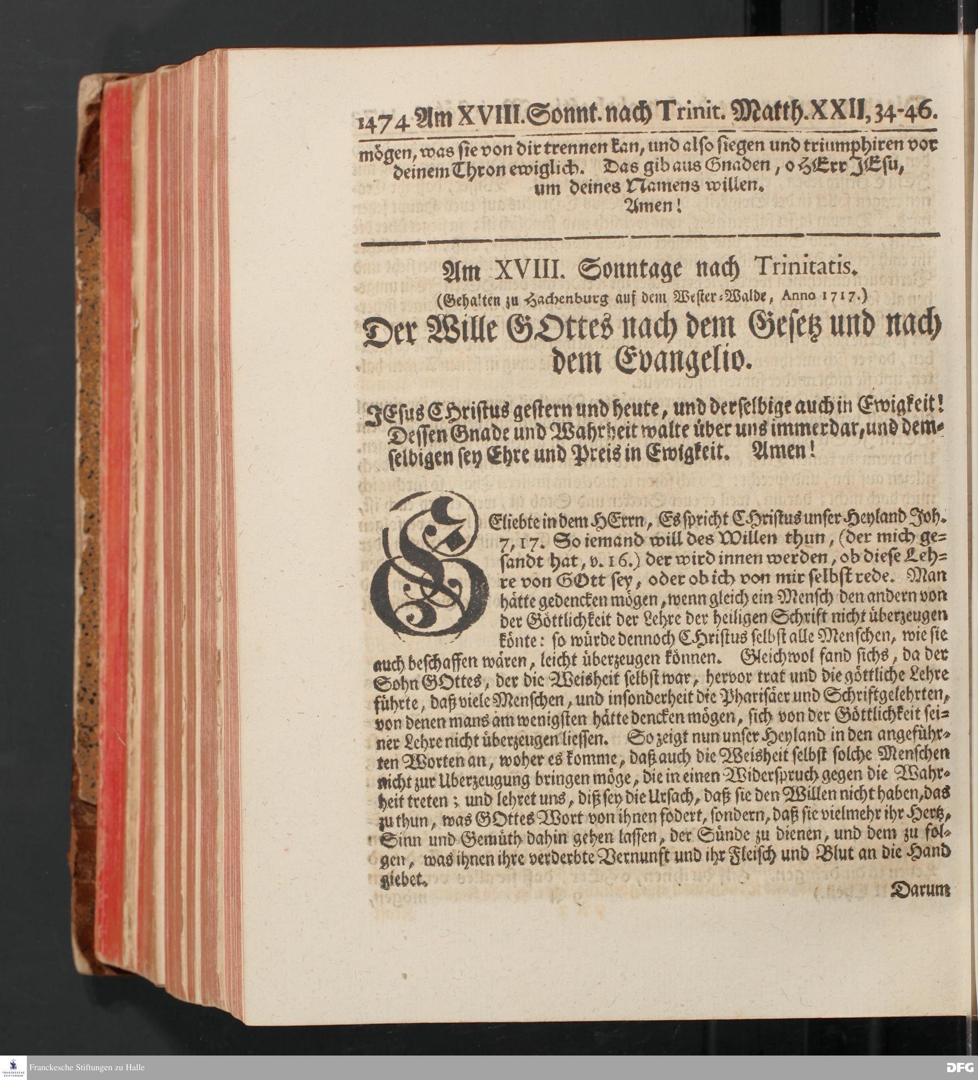 August Hermann Franckens, S.Theol.Prof.und Past. Sonn= und Fest=Tags=Predigten / Welche Theils in Halle, theils an verschiedenen auswärtigen Oertern, von wichtigen und auserlesenen Materien gehalten worden, Nebst Vorbereitung auf die hohen Feste und nützlichen Registern. Dritte Auflage. HALLE, gedruckt und verlegt im Wäysen=Hause MDCCXL. Mit Königl.Preuß.und Churfl.Brandenb.Privileg.