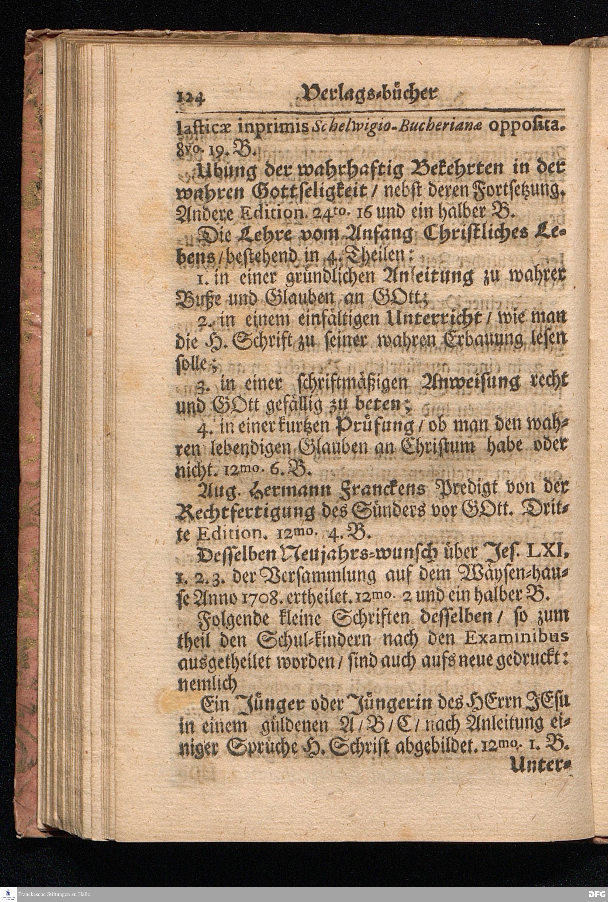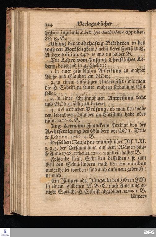 Die VI. Fortsetzung Der Wahrhaften und umständlichen Nachricht Vom Wäysen=Hause und übrigen Anstalten zu Glaucha vor Halle/ Bis zu Ende des Jahres Anno 1708. In einem abermaligen Send=Schreiben an den Hoch=Wohlgebohrnen Herrn, Herrn Carl Hildebrand, Freyherrn von Canstein, auf Canstein, Schönberg und Neukirchen ec. Erb=Herrn, abgefasset, Von August Hermann Francken/ S. Theol. Prof. zu Halle, und Past. zu Glaucha vor Halle. HALLE, im Wäysen=Hause. 1709