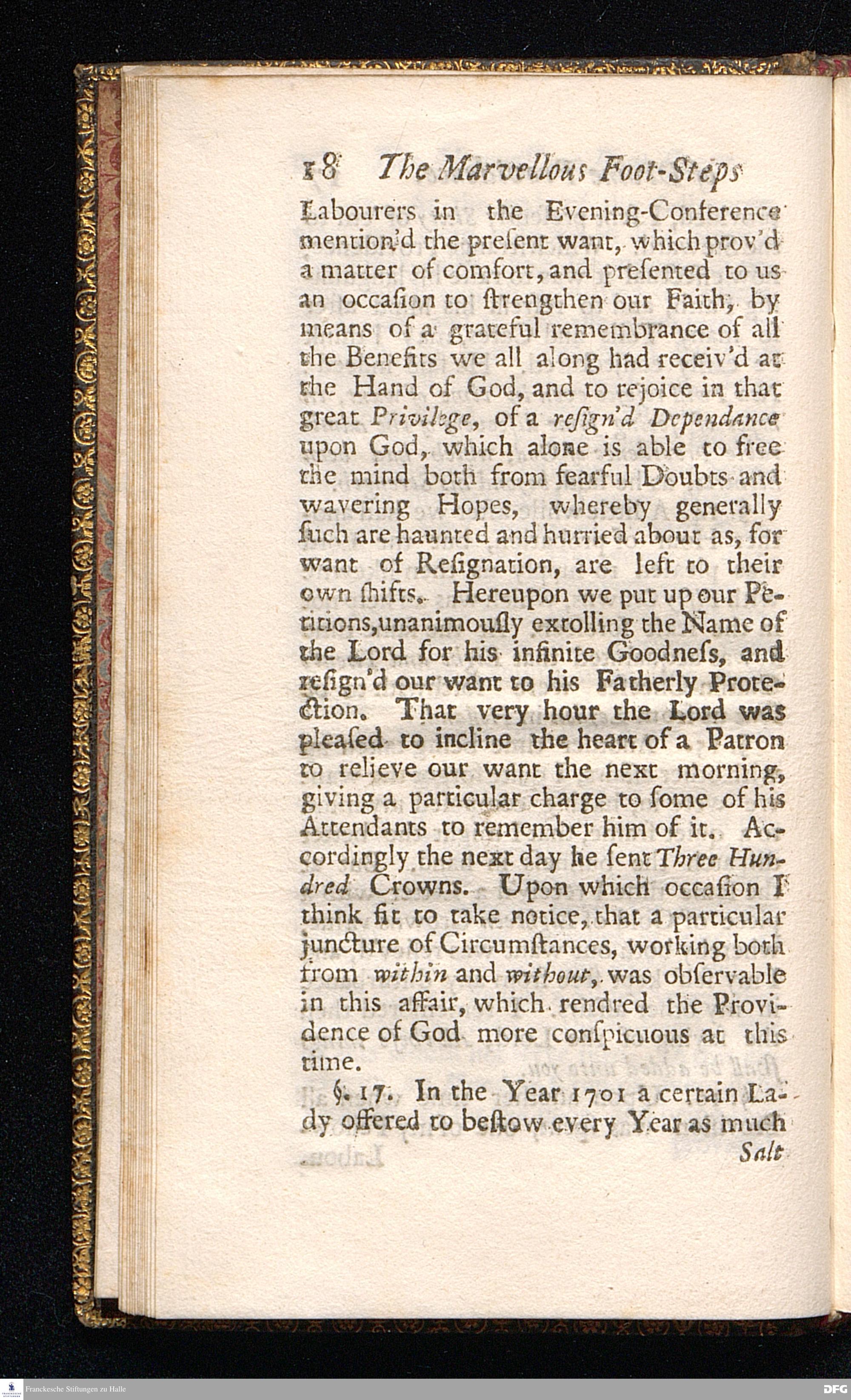 An ABSTRACT OF THE Marvellous Footsteps OF Divine Providence, In the Building of a very large Hospital, or rather, a Spacious College, For Charitable and Excellent Uses; And in the Maintaining of many Orphans and other Poor People therein; At Glaucha near Hall, In the Dominions of the K. of Prussia. Related by the Reverend Augustus Hermannus Franck, Professor of Divinity, and Minister of Glaucha aforesaid. With a PREFACE written by JOSIAH WOODWARD, D. D. And Recommended by another Eminent Divine of the City of London. LONDON, Printed and Sold by Joseph Downing in Bartholomew-Close near Smithfield, 1706