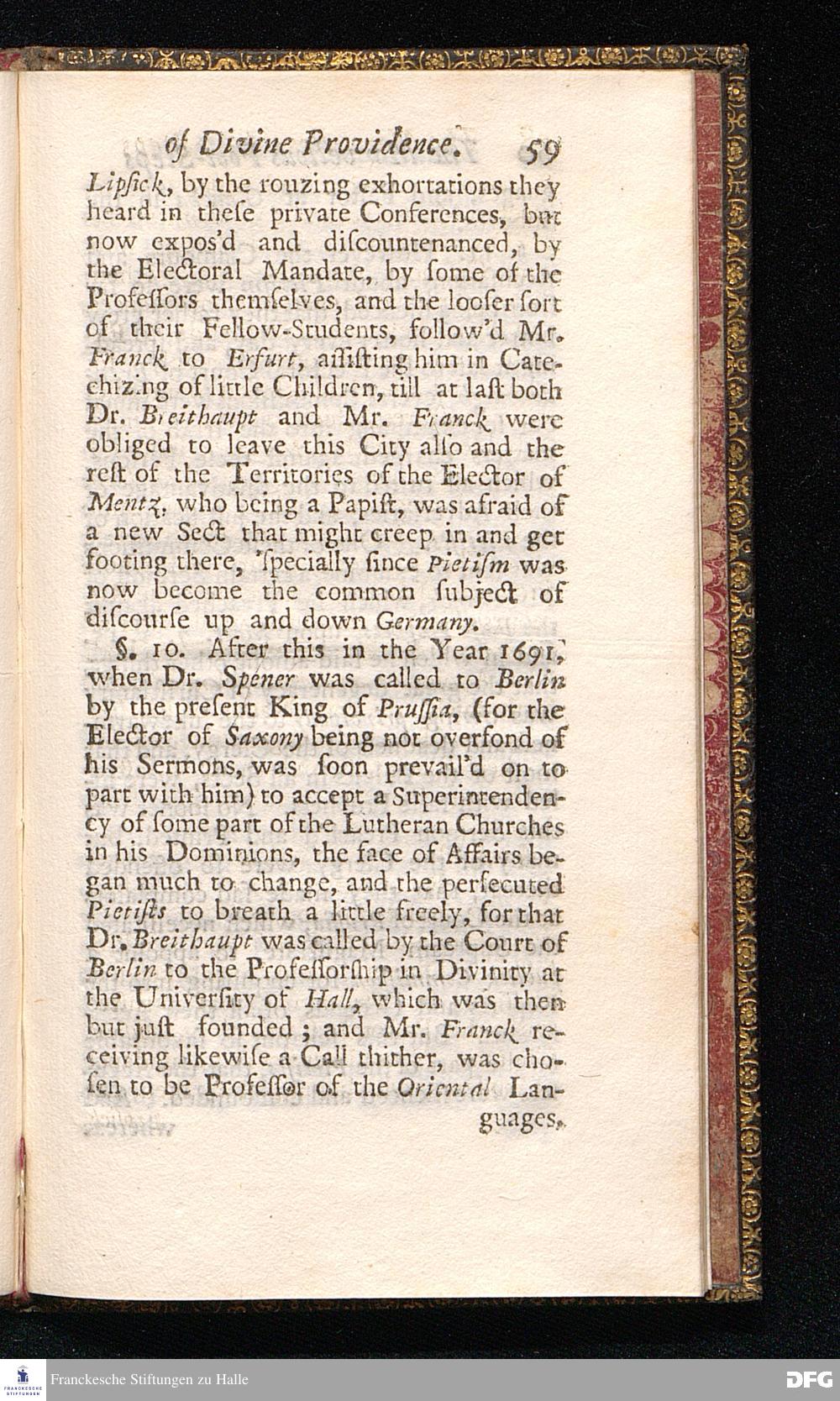 An ABSTRACT OF THE Marvellous Footsteps OF Divine Providence, In the Building of a very large Hospital, or rather, a Spacious College, For Charitable and Excellent Uses; And in the Maintaining of many Orphans and other Poor People therein; At Glaucha near Hall, In the Dominions of the K. of Prussia. Related by the Reverend Augustus Hermannus Franck, Professor of Divinity, and Minister of Glaucha aforesaid. With a PREFACE written by JOSIAH WOODWARD, D. D. And Recommended by another Eminent Divine of the City of London. LONDON, Printed and Sold by Joseph Downing in Bartholomew-Close near Smithfield, 1706