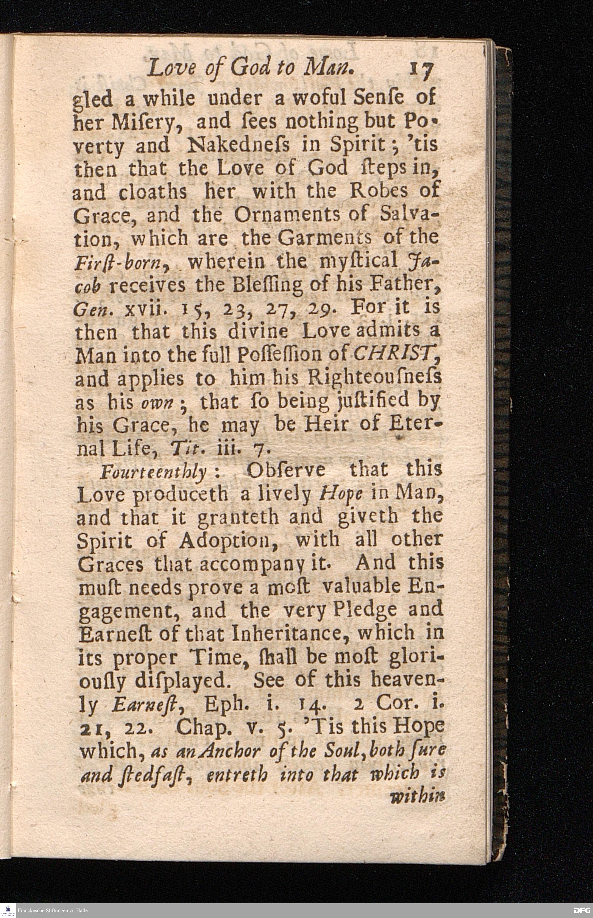 Three Practical DISCOURSES: I. Of the Love of GOD. II. Of Charity to the Poor. II. Of the differing Degrees of Glory. By August. Herman. Franck [!], Minister in the City of Hall, and Director of the pious Foundations there. Done into English from the High-Dutch. LONDON: Printed and Sold by Joseph Downing, in Bartholomew-Close near West-Smithfield. 1716