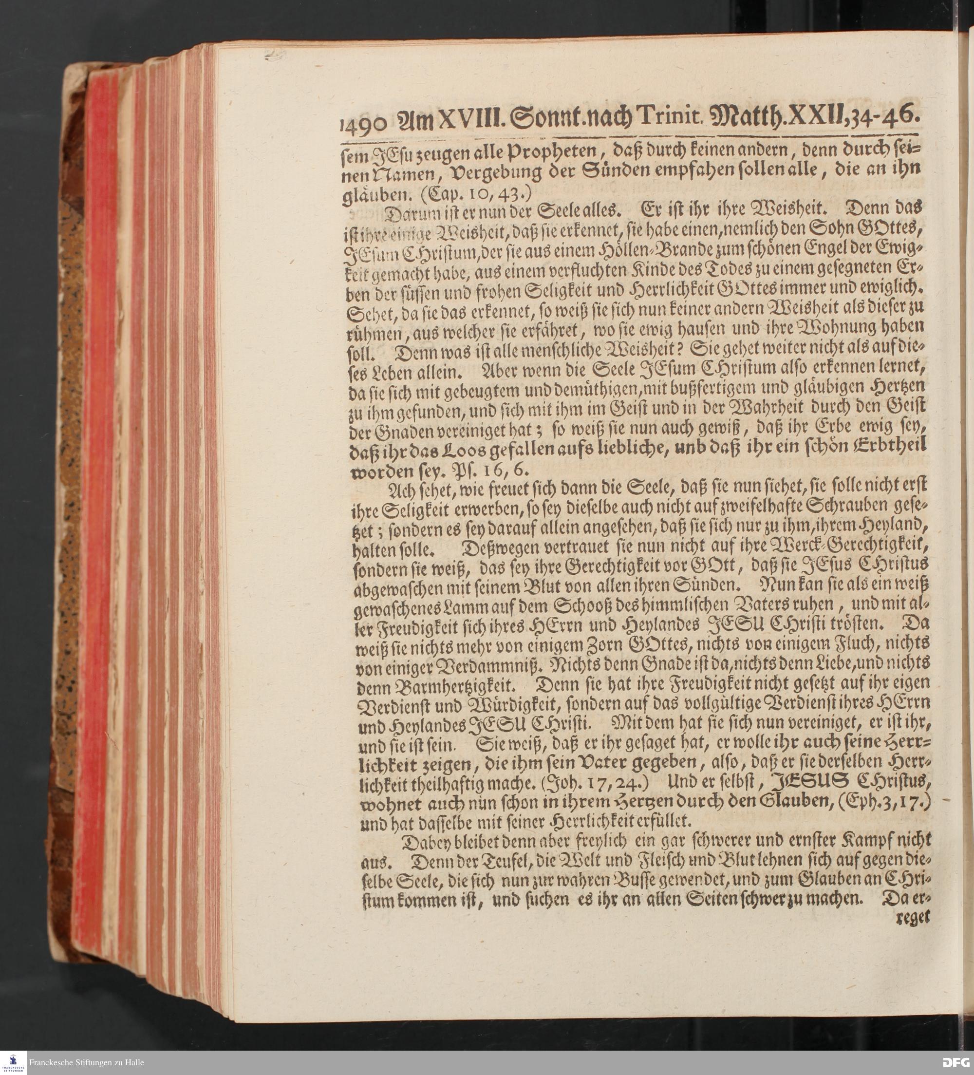 August Hermann Franckens, S.Theol.Prof.und Past. Sonn= und Fest=Tags=Predigten / Welche Theils in Halle, theils an verschiedenen auswärtigen Oertern, von wichtigen und auserlesenen Materien gehalten worden, Nebst Vorbereitung auf die hohen Feste und nützlichen Registern. Dritte Auflage. HALLE, gedruckt und verlegt im Wäysen=Hause MDCCXL. Mit Königl.Preuß.und Churfl.Brandenb.Privileg.