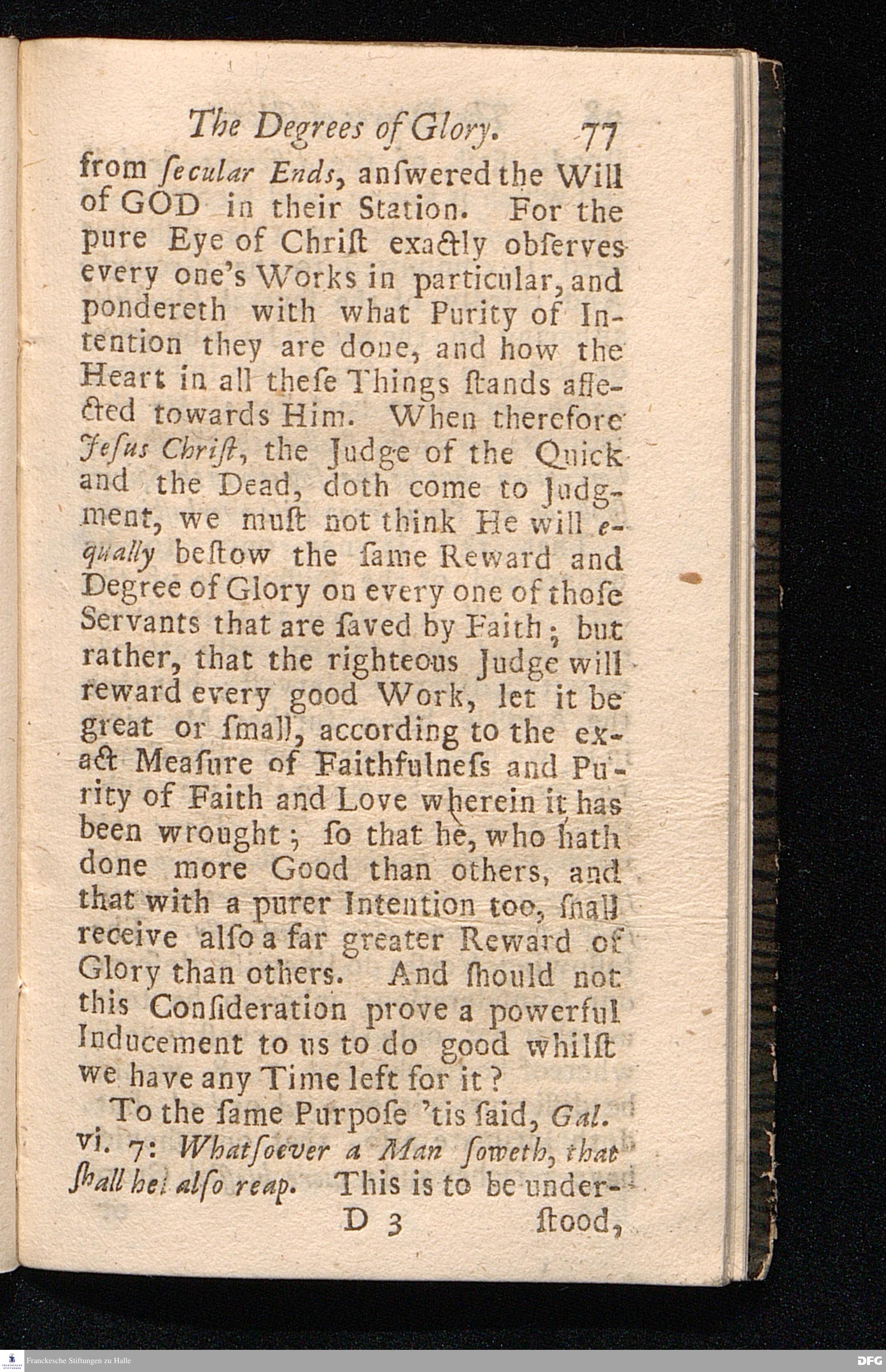 Three Practical DISCOURSES: I. Of the Love of GOD. II. Of Charity to the Poor. II. Of the differing Degrees of Glory. By August. Herman. Franck [!], Minister in the City of Hall, and Director of the pious Foundations there. Done into English from the High-Dutch. LONDON: Printed and Sold by Joseph Downing, in Bartholomew-Close near West-Smithfield. 1716