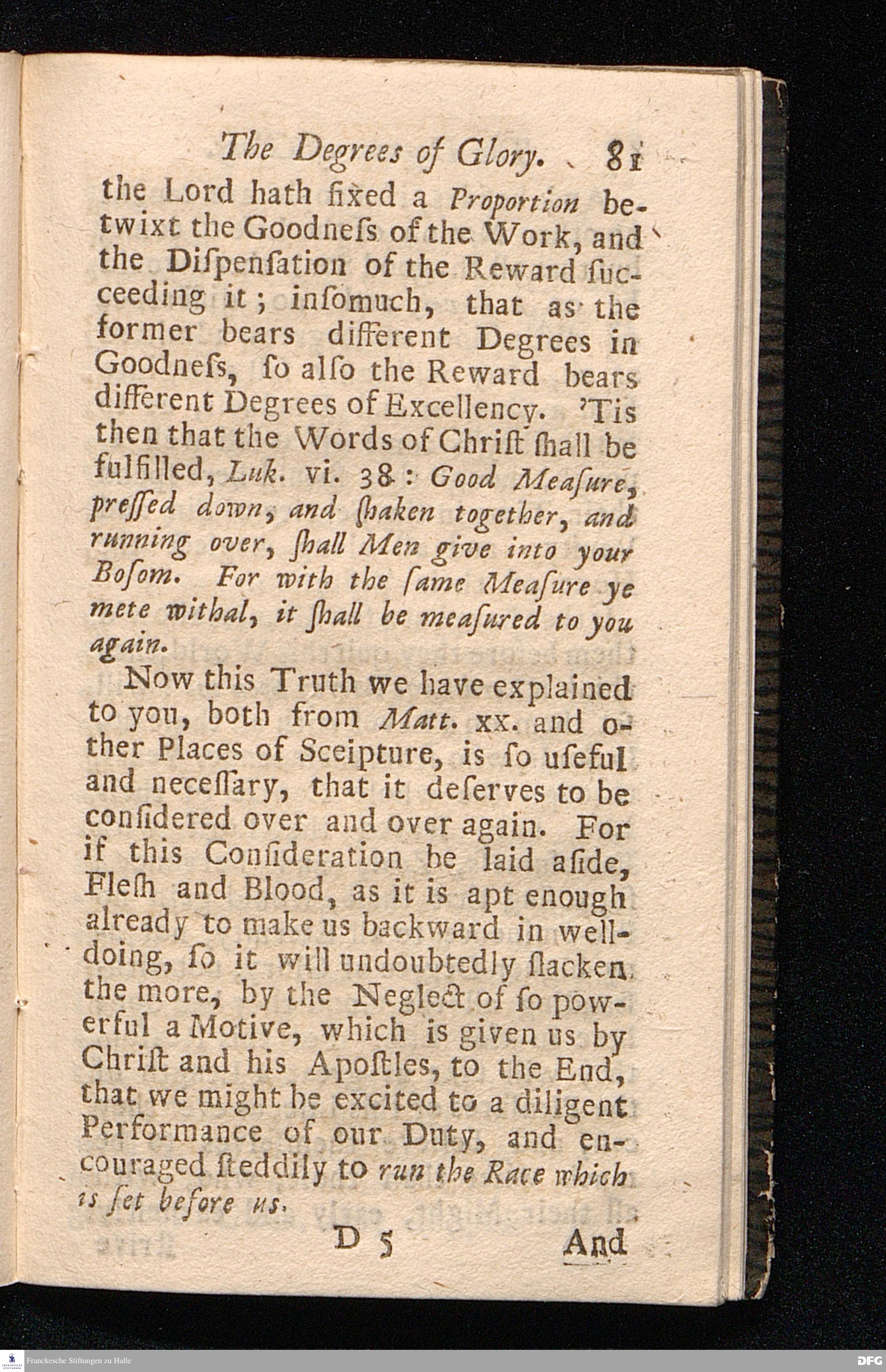 Three Practical DISCOURSES: I. Of the Love of GOD. II. Of Charity to the Poor. II. Of the differing Degrees of Glory. By August. Herman. Franck [!], Minister in the City of Hall, and Director of the pious Foundations there. Done into English from the High-Dutch. LONDON: Printed and Sold by Joseph Downing, in Bartholomew-Close near West-Smithfield. 1716