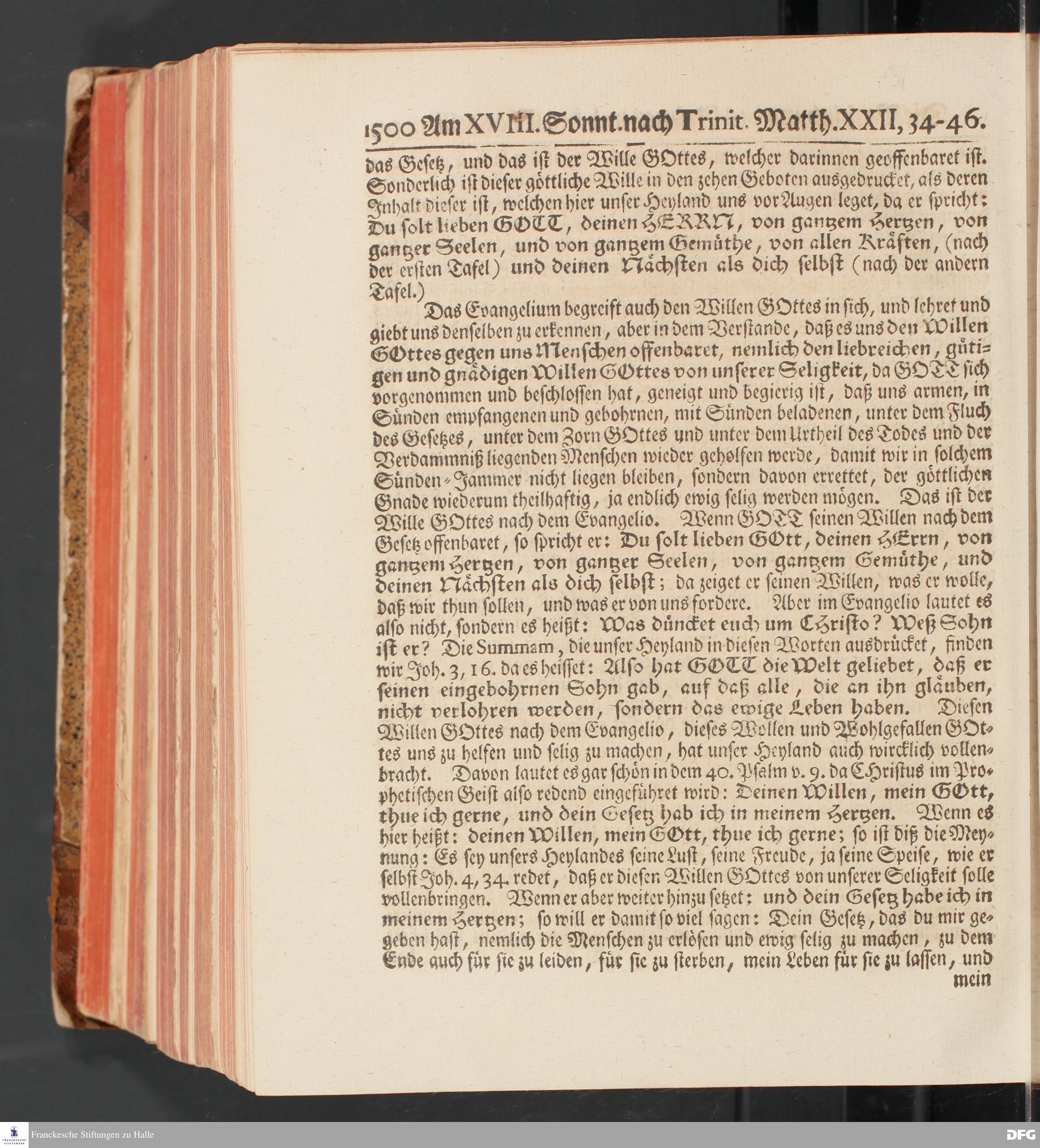 August Hermann Franckens, S.Theol.Prof.und Past. Sonn= und Fest=Tags=Predigten / Welche Theils in Halle, theils an verschiedenen auswärtigen Oertern, von wichtigen und auserlesenen Materien gehalten worden, Nebst Vorbereitung auf die hohen Feste und nützlichen Registern. Dritte Auflage. HALLE, gedruckt und verlegt im Wäysen=Hause MDCCXL. Mit Königl.Preuß.und Churfl.Brandenb.Privileg.