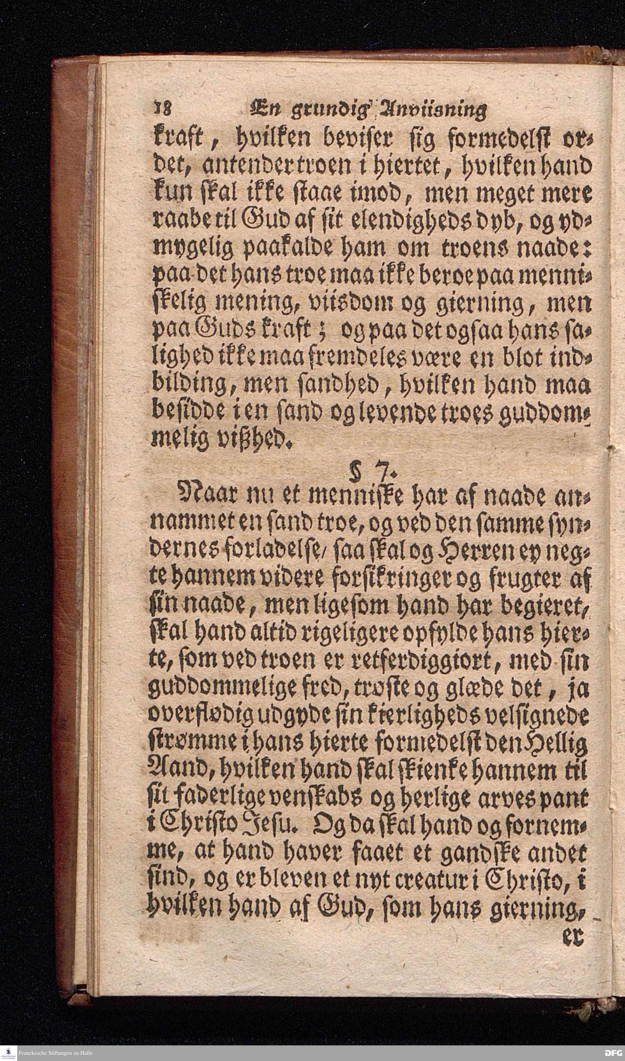 Lærdom Om Et christeligt Levnets Begyndelse, Som indeholder fire Deele: 1. En grundig Anviisning til sand bod og troe paa Gud. 2. En enfoldig Underviisning, hvorledes man skal læse den hellige Skrift til sin rette opbyggelse. 3. En Underviisning af Skriften til at bede ret og Gud behageligen. 4. En kort Prøve, om man har den sande levende troe til Christum, eller ey. KJØBENHAVN,Trykt udi Missions Collegii Bogtrykkerie og paa dets forlag. Aar 1725