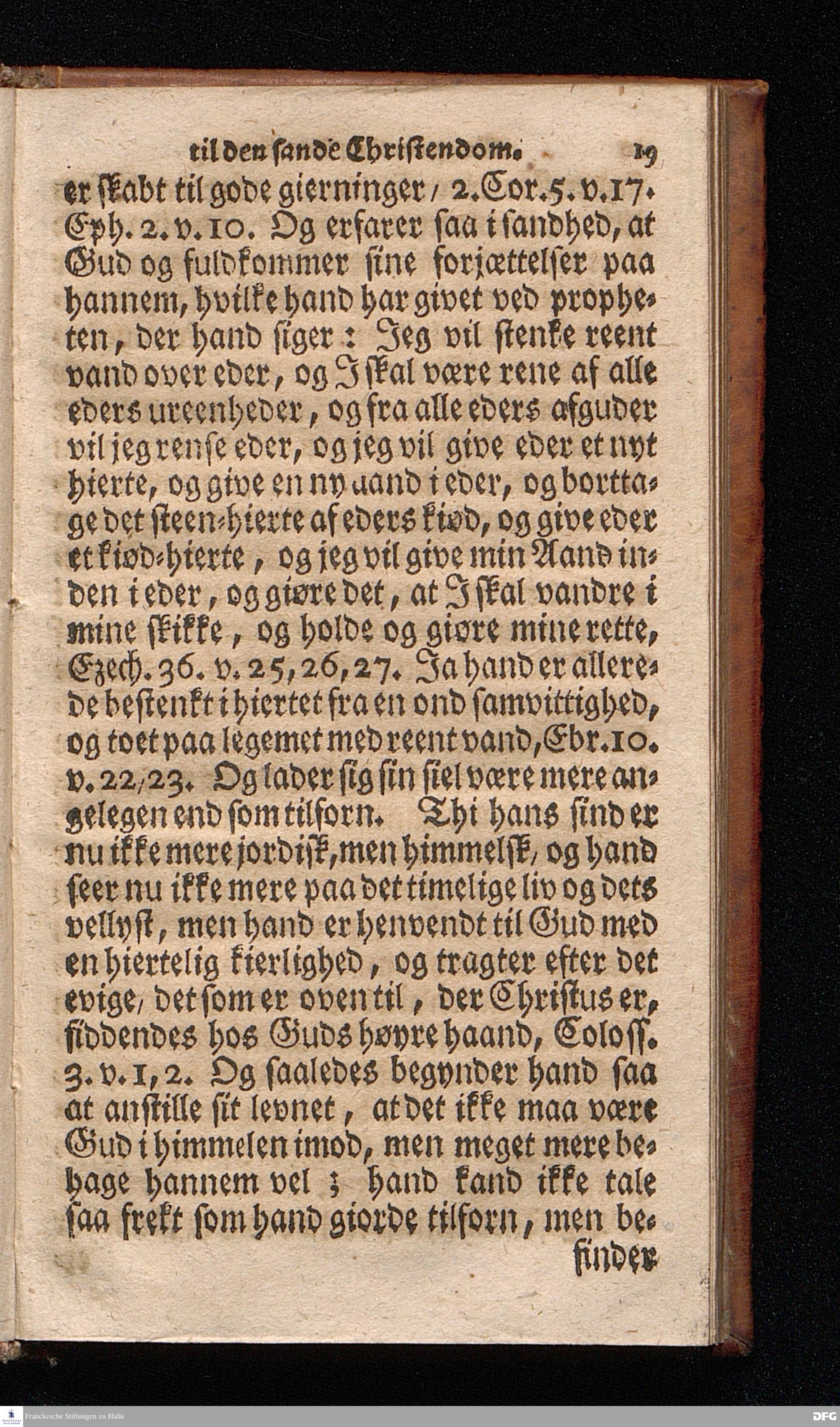 Lærdom Om Et christeligt Levnets Begyndelse, Som indeholder fire Deele: 1. En grundig Anviisning til sand bod og troe paa Gud. 2. En enfoldig Underviisning, hvorledes man skal læse den hellige Skrift til sin rette opbyggelse. 3. En Underviisning af Skriften til at bede ret og Gud behageligen. 4. En kort Prøve, om man har den sande levende troe til Christum, eller ey. KJØBENHAVN,Trykt udi Missions Collegii Bogtrykkerie og paa dets forlag. Aar 1725