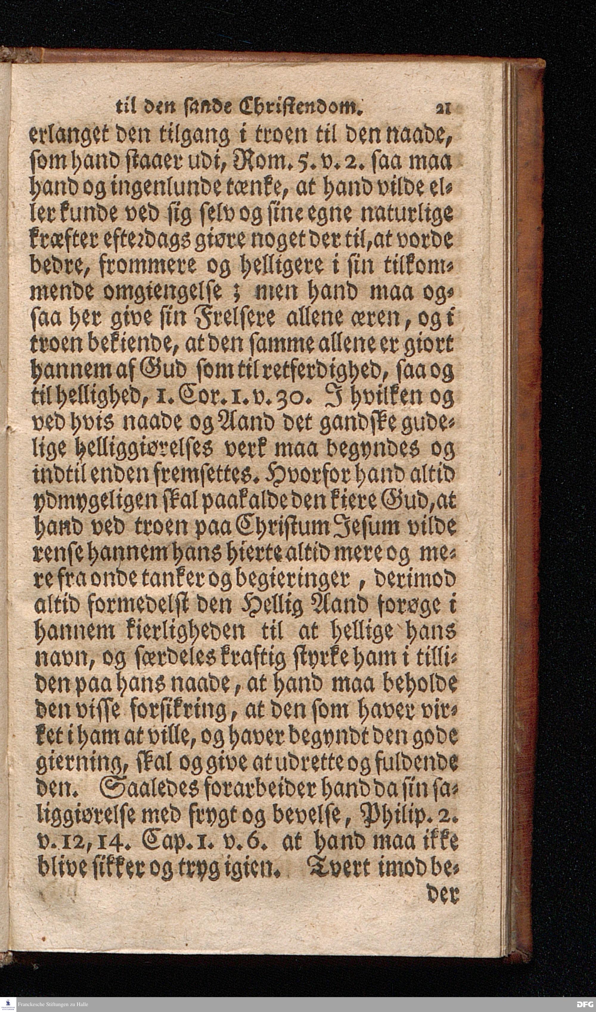 Lærdom Om Et christeligt Levnets Begyndelse, Som indeholder fire Deele: 1. En grundig Anviisning til sand bod og troe paa Gud. 2. En enfoldig Underviisning, hvorledes man skal læse den hellige Skrift til sin rette opbyggelse. 3. En Underviisning af Skriften til at bede ret og Gud behageligen. 4. En kort Prøve, om man har den sande levende troe til Christum, eller ey. KJØBENHAVN,Trykt udi Missions Collegii Bogtrykkerie og paa dets forlag. Aar 1725
