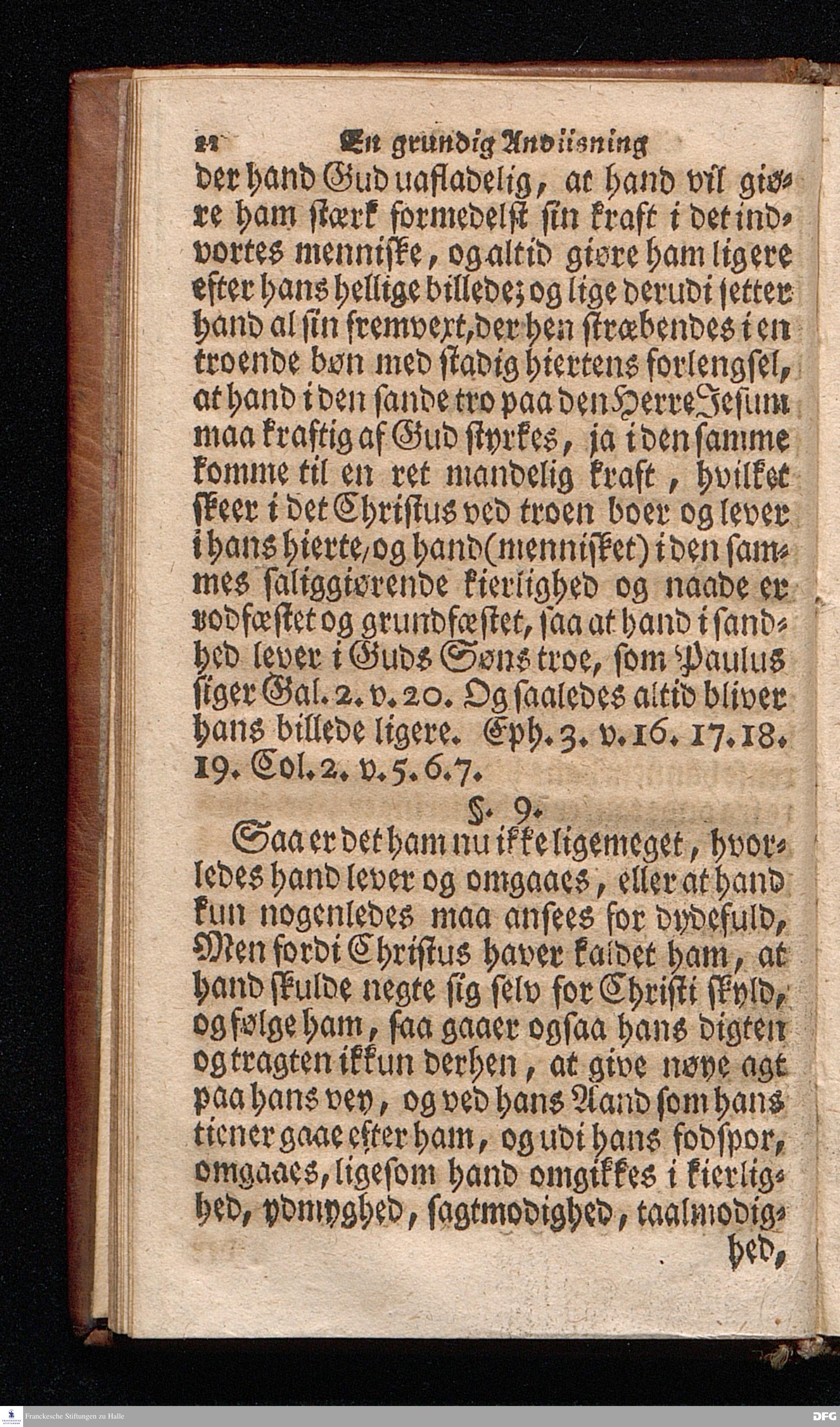 Lærdom Om Et christeligt Levnets Begyndelse, Som indeholder fire Deele: 1. En grundig Anviisning til sand bod og troe paa Gud. 2. En enfoldig Underviisning, hvorledes man skal læse den hellige Skrift til sin rette opbyggelse. 3. En Underviisning af Skriften til at bede ret og Gud behageligen. 4. En kort Prøve, om man har den sande levende troe til Christum, eller ey. KJØBENHAVN,Trykt udi Missions Collegii Bogtrykkerie og paa dets forlag. Aar 1725