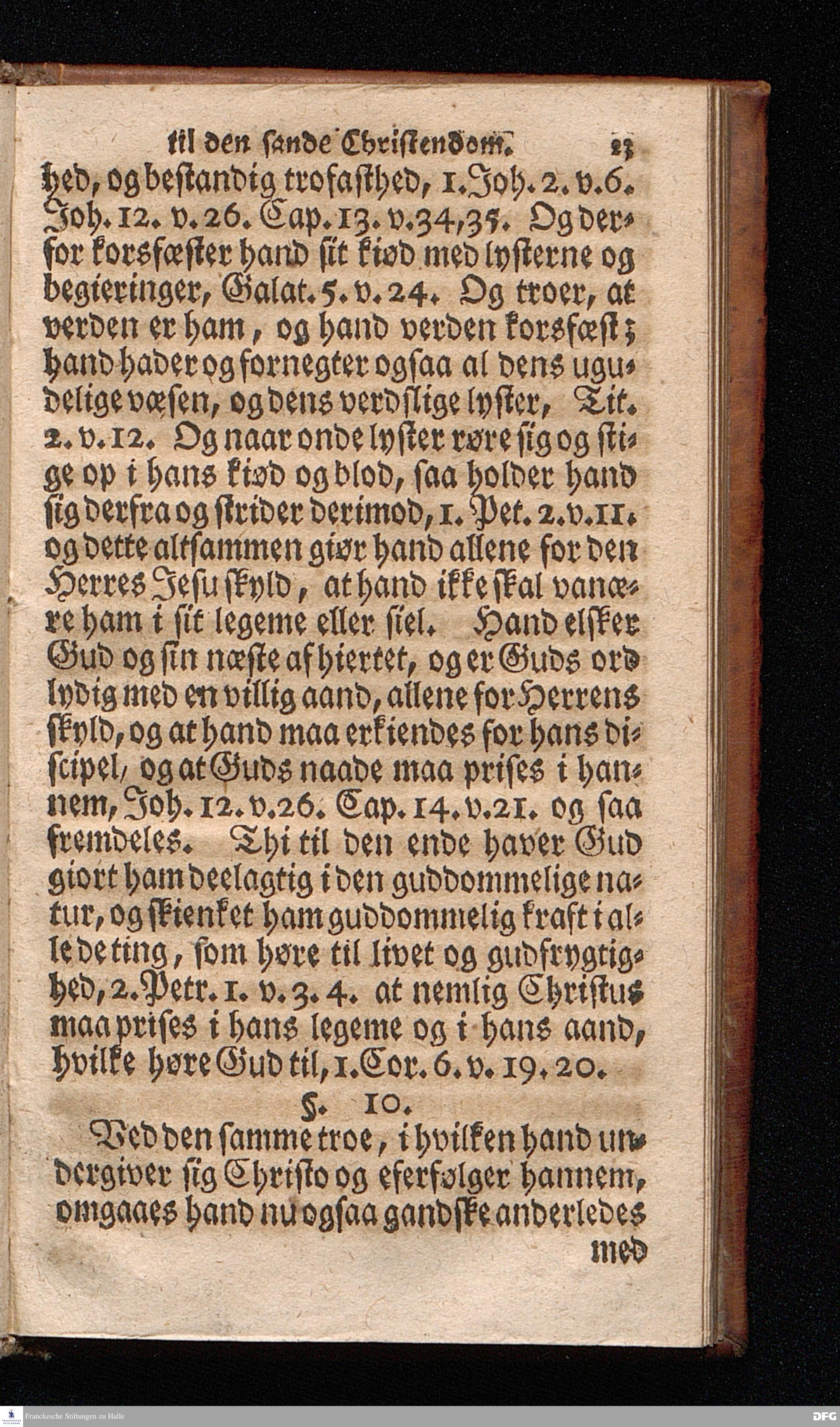 Lærdom Om Et christeligt Levnets Begyndelse, Som indeholder fire Deele: 1. En grundig Anviisning til sand bod og troe paa Gud. 2. En enfoldig Underviisning, hvorledes man skal læse den hellige Skrift til sin rette opbyggelse. 3. En Underviisning af Skriften til at bede ret og Gud behageligen. 4. En kort Prøve, om man har den sande levende troe til Christum, eller ey. KJØBENHAVN,Trykt udi Missions Collegii Bogtrykkerie og paa dets forlag. Aar 1725