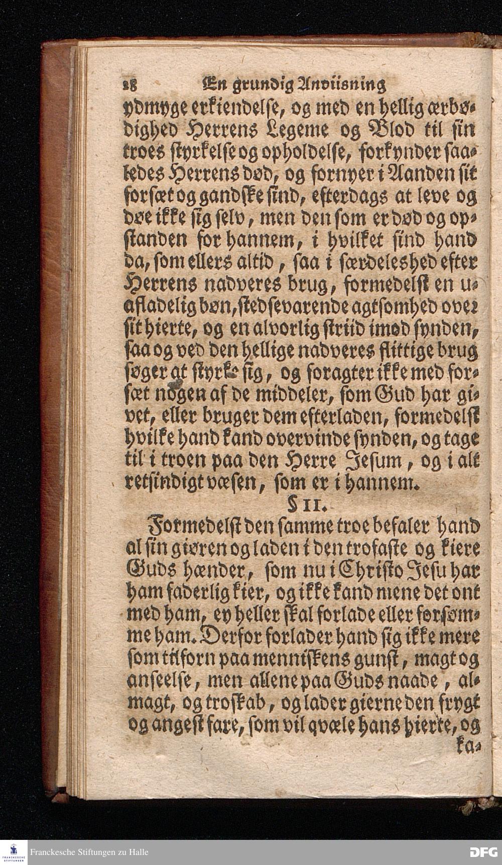 Lærdom Om Et christeligt Levnets Begyndelse, Som indeholder fire Deele: 1. En grundig Anviisning til sand bod og troe paa Gud. 2. En enfoldig Underviisning, hvorledes man skal læse den hellige Skrift til sin rette opbyggelse. 3. En Underviisning af Skriften til at bede ret og Gud behageligen. 4. En kort Prøve, om man har den sande levende troe til Christum, eller ey. KJØBENHAVN,Trykt udi Missions Collegii Bogtrykkerie og paa dets forlag. Aar 1725