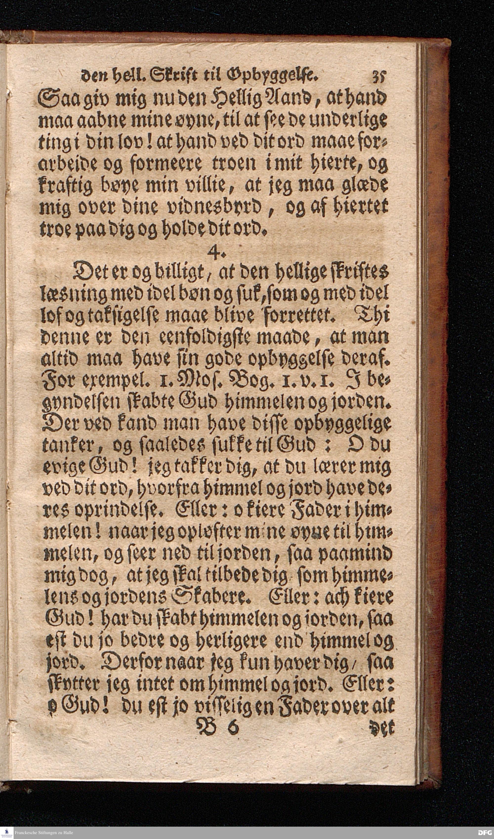 Lærdom Om Et christeligt Levnets Begyndelse, Som indeholder fire Deele: 1. En grundig Anviisning til sand bod og troe paa Gud. 2. En enfoldig Underviisning, hvorledes man skal læse den hellige Skrift til sin rette opbyggelse. 3. En Underviisning af Skriften til at bede ret og Gud behageligen. 4. En kort Prøve, om man har den sande levende troe til Christum, eller ey. KJØBENHAVN,Trykt udi Missions Collegii Bogtrykkerie og paa dets forlag. Aar 1725