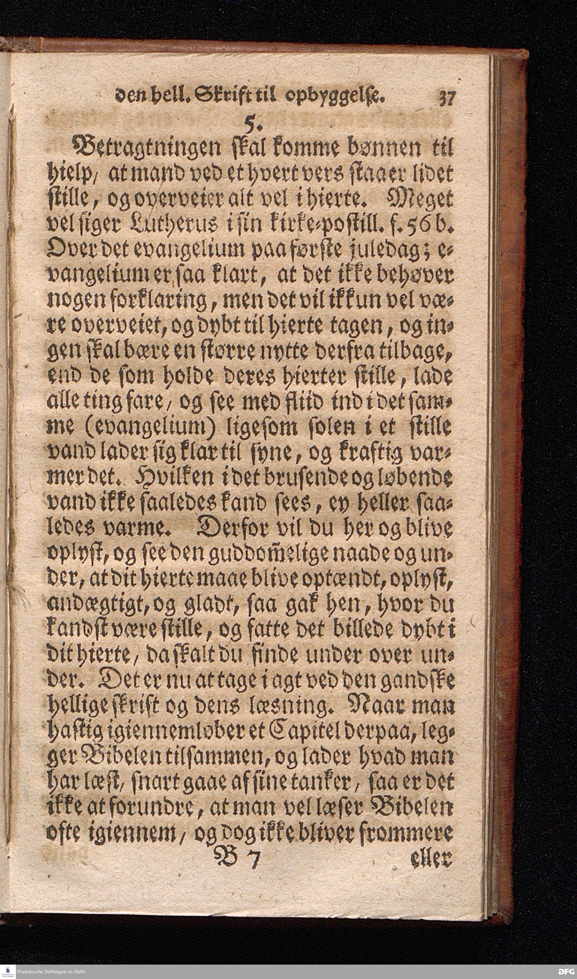 Lærdom Om Et christeligt Levnets Begyndelse, Som indeholder fire Deele: 1. En grundig Anviisning til sand bod og troe paa Gud. 2. En enfoldig Underviisning, hvorledes man skal læse den hellige Skrift til sin rette opbyggelse. 3. En Underviisning af Skriften til at bede ret og Gud behageligen. 4. En kort Prøve, om man har den sande levende troe til Christum, eller ey. KJØBENHAVN,Trykt udi Missions Collegii Bogtrykkerie og paa dets forlag. Aar 1725