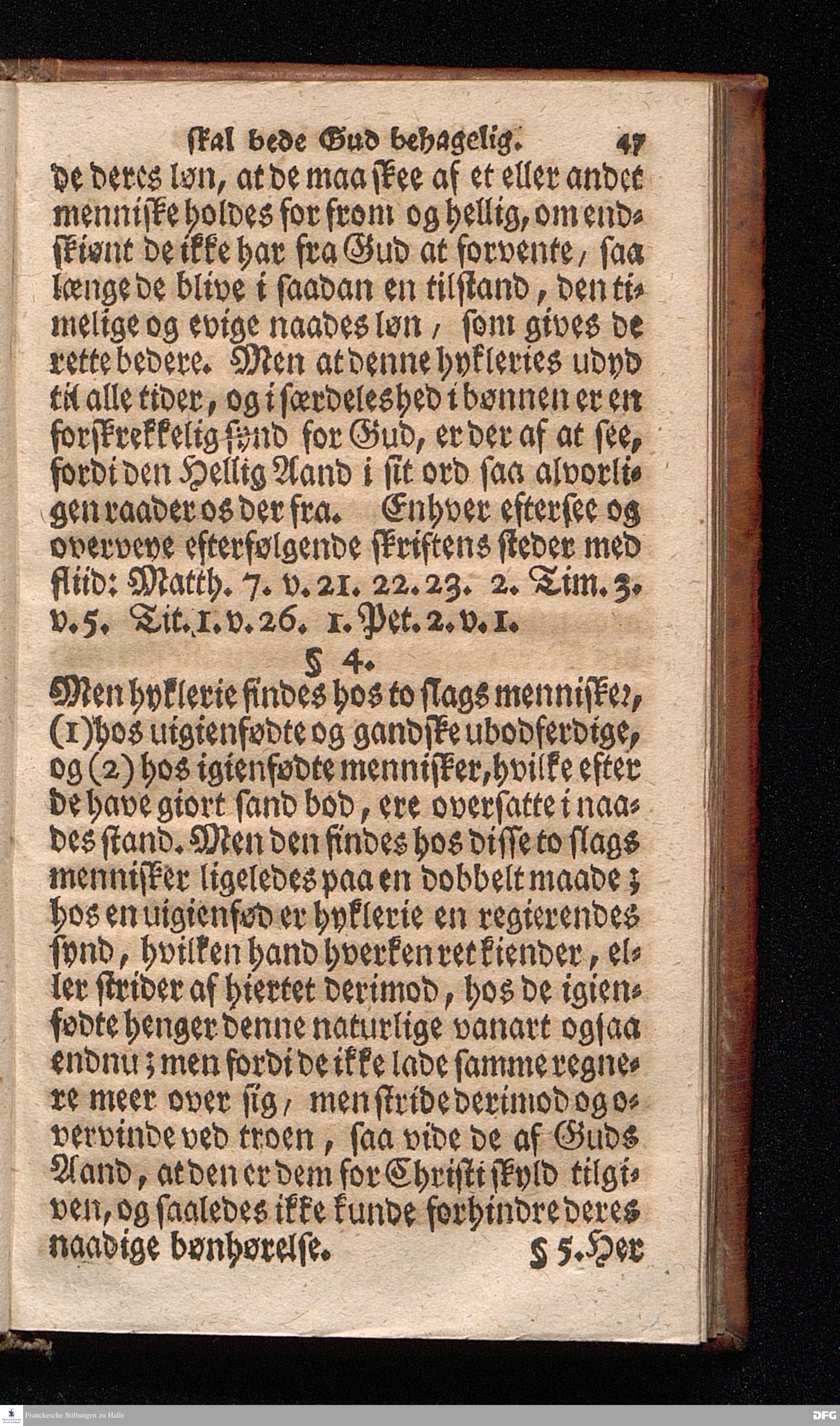 Lærdom Om Et christeligt Levnets Begyndelse, Som indeholder fire Deele: 1. En grundig Anviisning til sand bod og troe paa Gud. 2. En enfoldig Underviisning, hvorledes man skal læse den hellige Skrift til sin rette opbyggelse. 3. En Underviisning af Skriften til at bede ret og Gud behageligen. 4. En kort Prøve, om man har den sande levende troe til Christum, eller ey. KJØBENHAVN,Trykt udi Missions Collegii Bogtrykkerie og paa dets forlag. Aar 1725