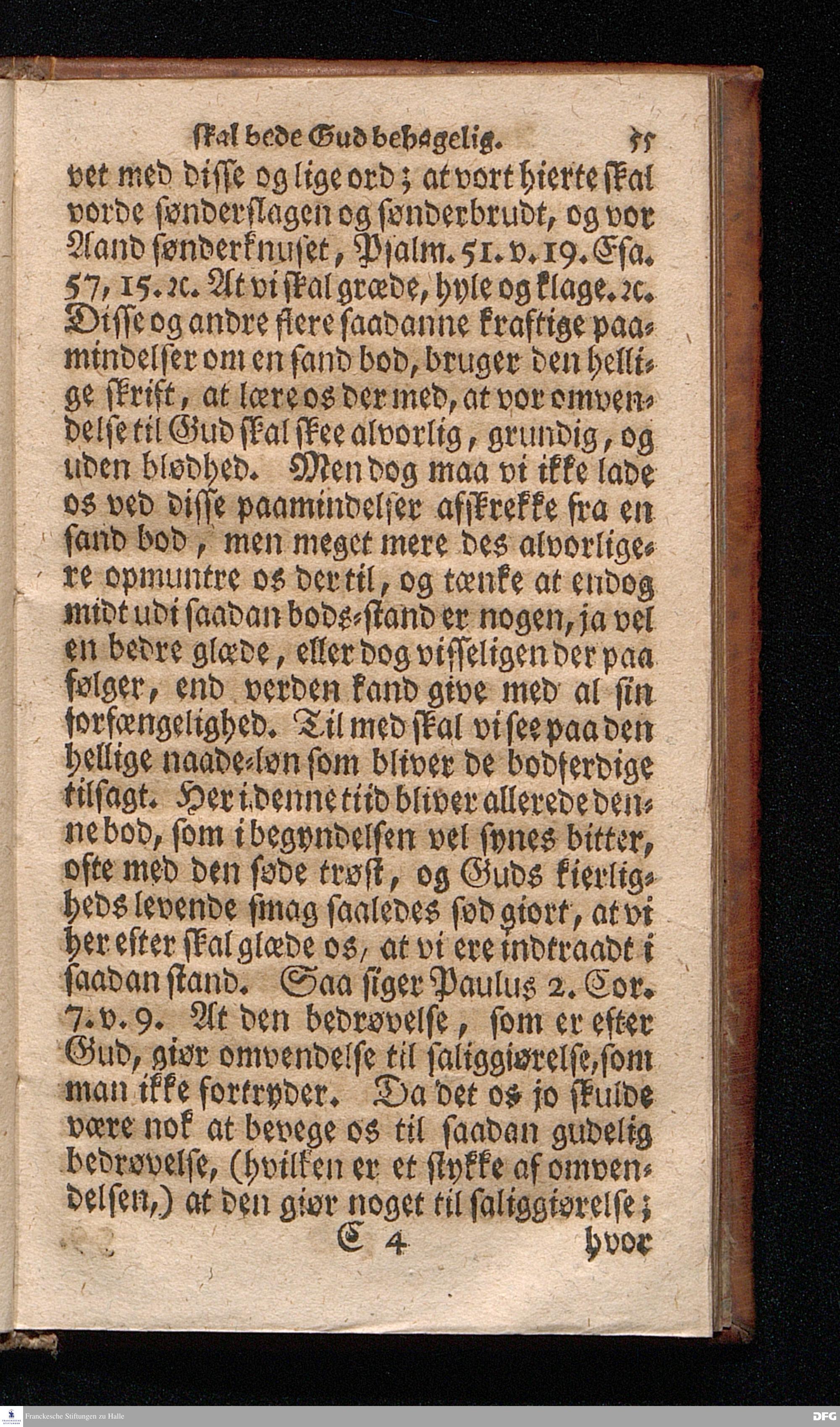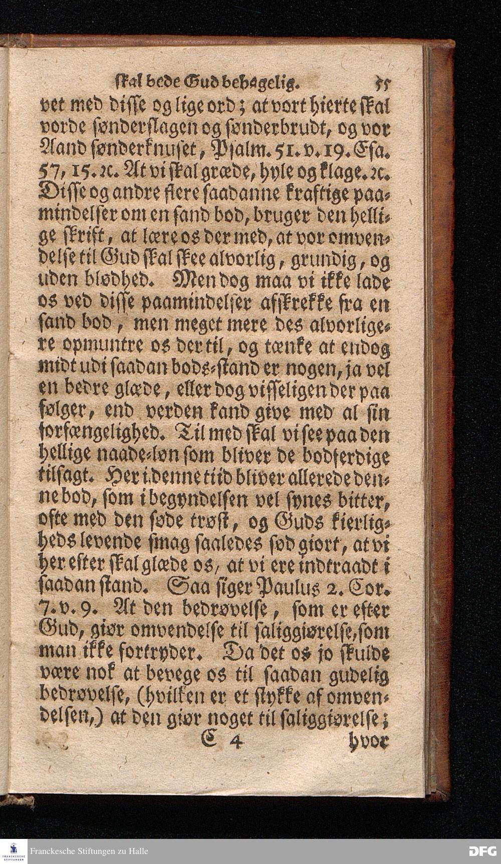 Lærdom Om Et christeligt Levnets Begyndelse, Som indeholder fire Deele: 1. En grundig Anviisning til sand bod og troe paa Gud. 2. En enfoldig Underviisning, hvorledes man skal læse den hellige Skrift til sin rette opbyggelse. 3. En Underviisning af Skriften til at bede ret og Gud behageligen. 4. En kort Prøve, om man har den sande levende troe til Christum, eller ey. KJØBENHAVN,Trykt udi Missions Collegii Bogtrykkerie og paa dets forlag. Aar 1725