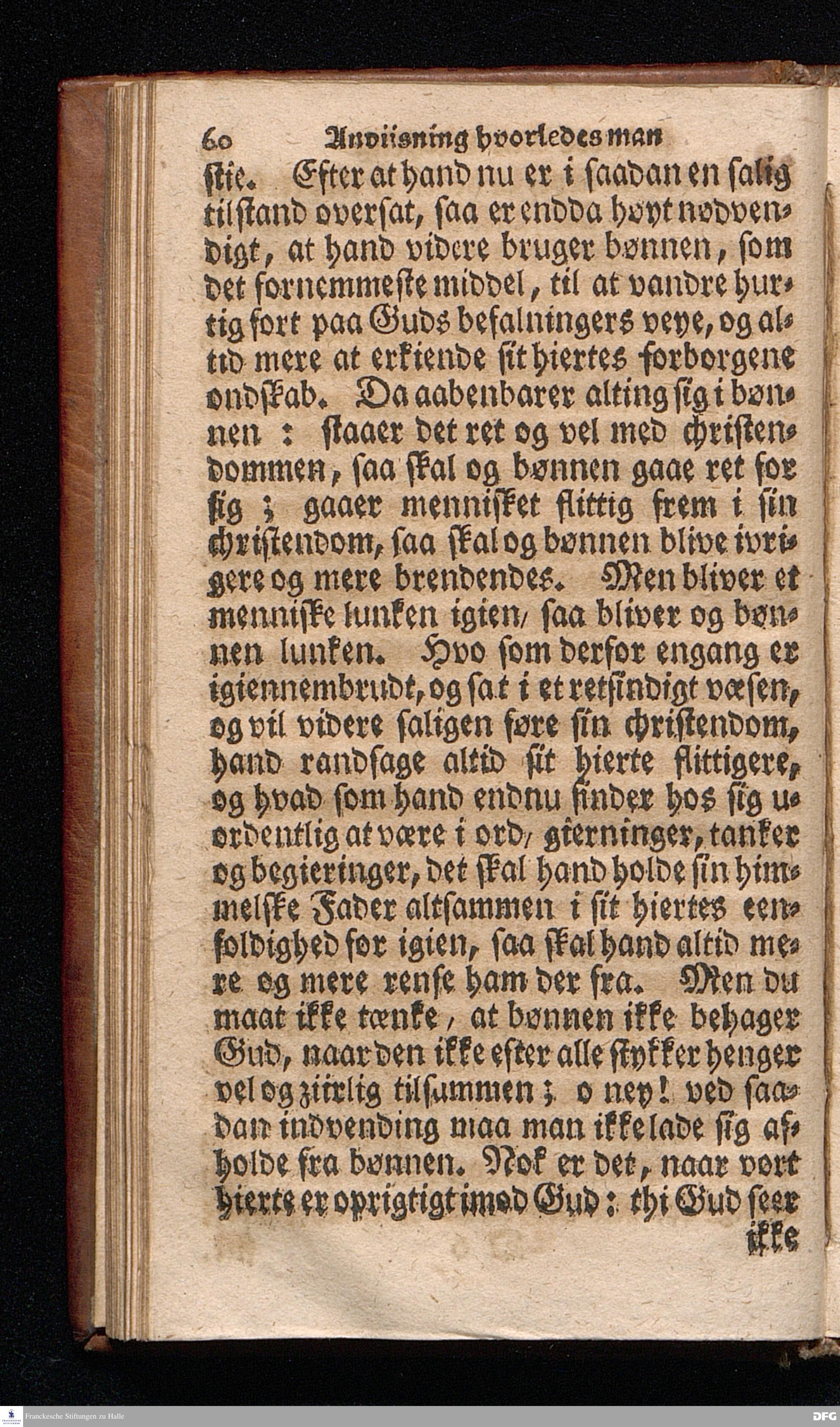 Lærdom Om Et christeligt Levnets Begyndelse, Som indeholder fire Deele: 1. En grundig Anviisning til sand bod og troe paa Gud. 2. En enfoldig Underviisning, hvorledes man skal læse den hellige Skrift til sin rette opbyggelse. 3. En Underviisning af Skriften til at bede ret og Gud behageligen. 4. En kort Prøve, om man har den sande levende troe til Christum, eller ey. KJØBENHAVN,Trykt udi Missions Collegii Bogtrykkerie og paa dets forlag. Aar 1725