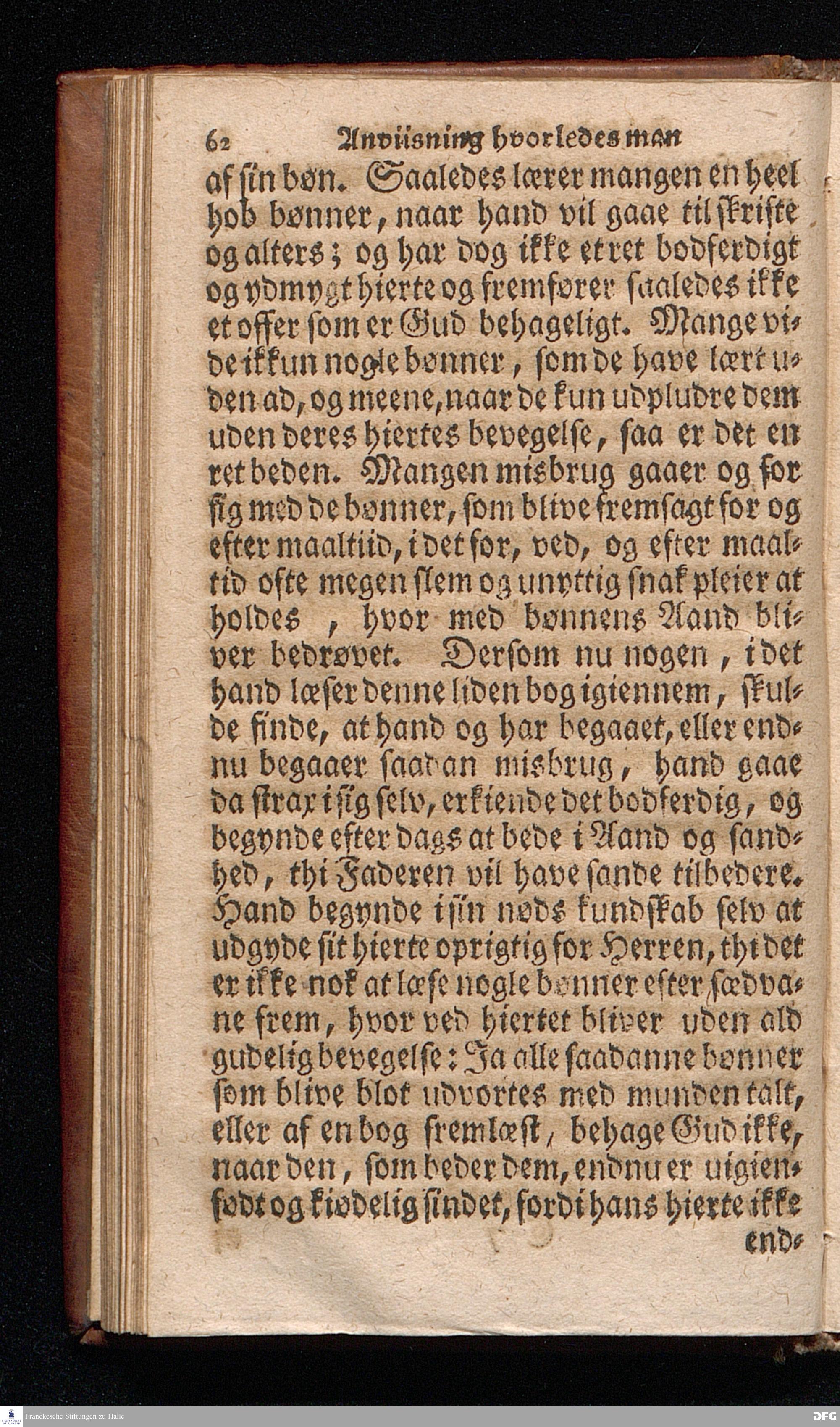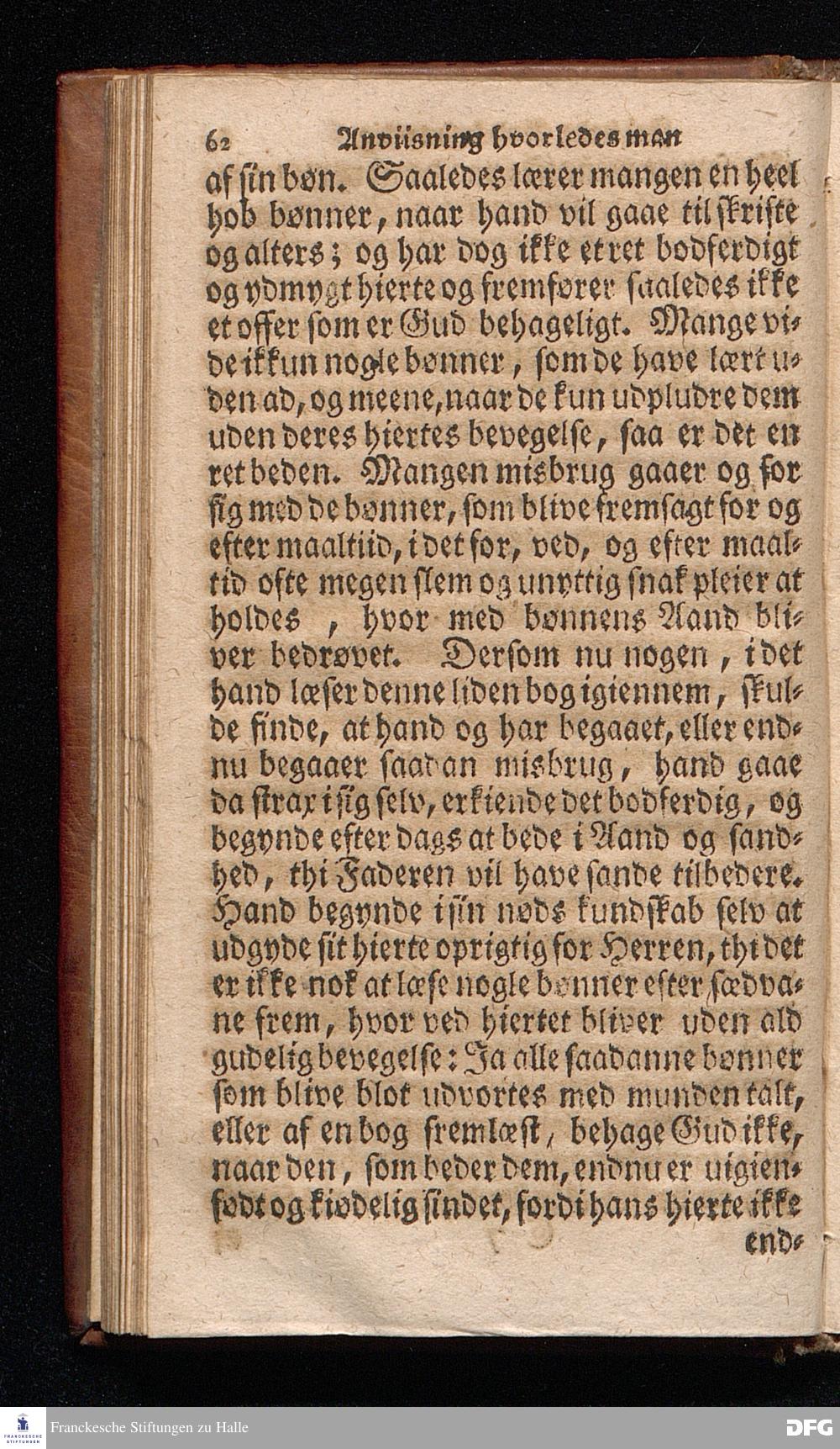 Lærdom Om Et christeligt Levnets Begyndelse, Som indeholder fire Deele: 1. En grundig Anviisning til sand bod og troe paa Gud. 2. En enfoldig Underviisning, hvorledes man skal læse den hellige Skrift til sin rette opbyggelse. 3. En Underviisning af Skriften til at bede ret og Gud behageligen. 4. En kort Prøve, om man har den sande levende troe til Christum, eller ey. KJØBENHAVN,Trykt udi Missions Collegii Bogtrykkerie og paa dets forlag. Aar 1725
