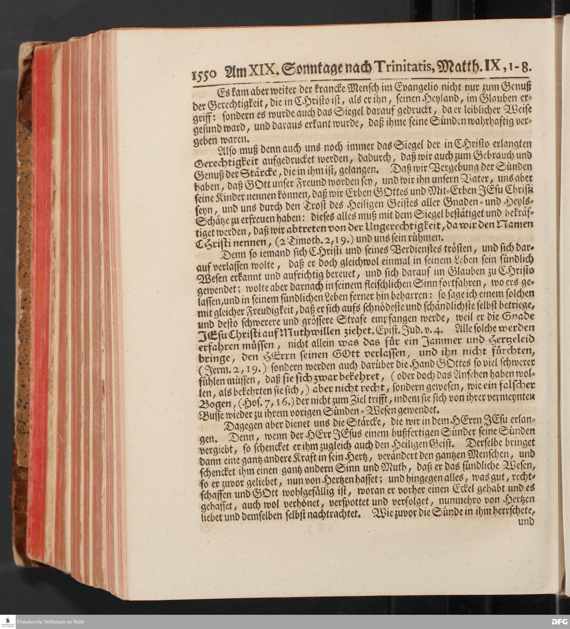 August Hermann Franckens, S.Theol.Prof.und Past. Sonn= und Fest=Tags=Predigten / Welche Theils in Halle, theils an verschiedenen auswärtigen Oertern, von wichtigen und auserlesenen Materien gehalten worden, Nebst Vorbereitung auf die hohen Feste und nützlichen Registern. Dritte Auflage. HALLE, gedruckt und verlegt im Wäysen=Hause MDCCXL. Mit Königl.Preuß.und Churfl.Brandenb.Privileg.