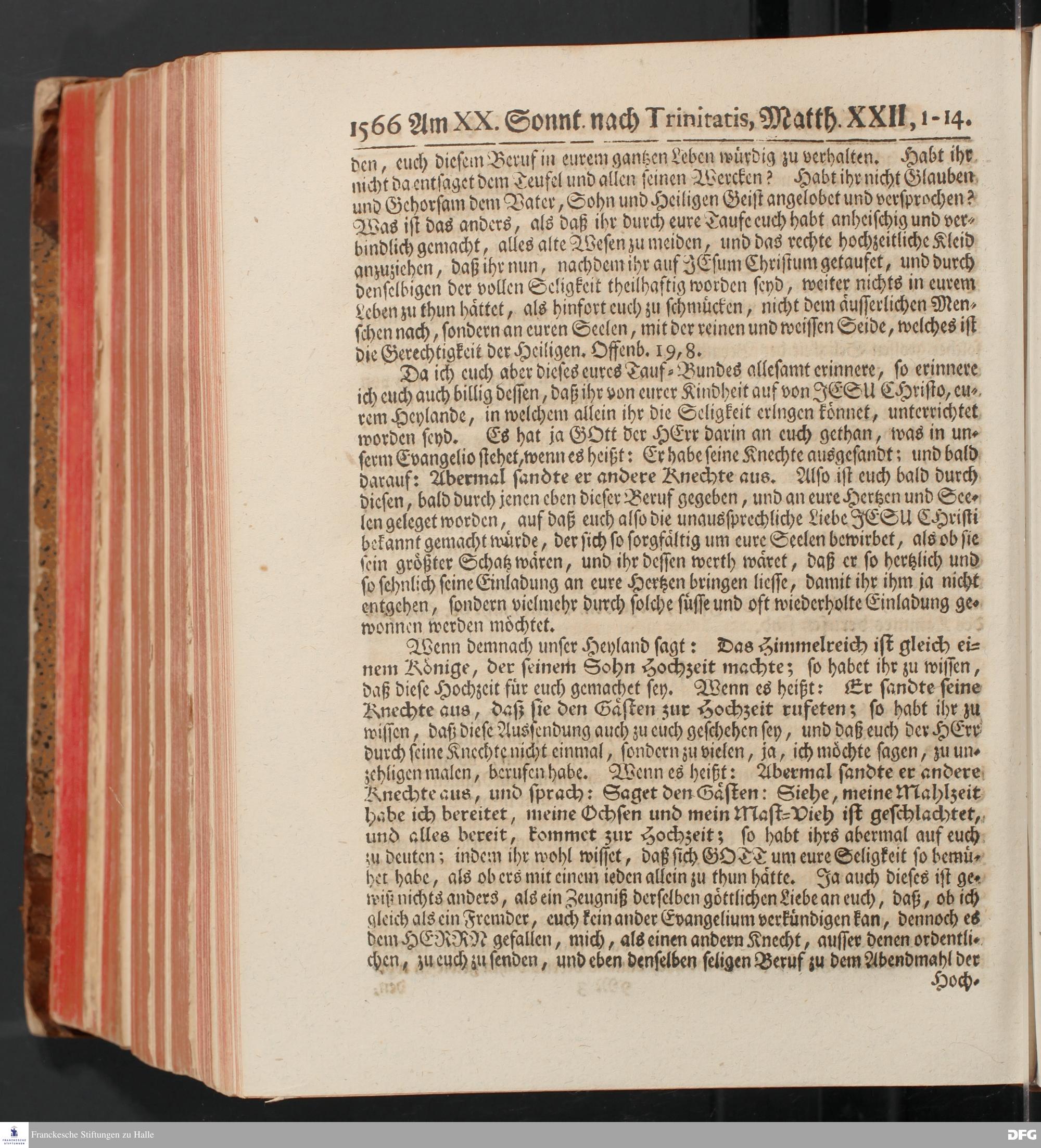 August Hermann Franckens, S.Theol.Prof.und Past. Sonn= und Fest=Tags=Predigten / Welche Theils in Halle, theils an verschiedenen auswärtigen Oertern, von wichtigen und auserlesenen Materien gehalten worden, Nebst Vorbereitung auf die hohen Feste und nützlichen Registern. Dritte Auflage. HALLE, gedruckt und verlegt im Wäysen=Hause MDCCXL. Mit Königl.Preuß.und Churfl.Brandenb.Privileg.
