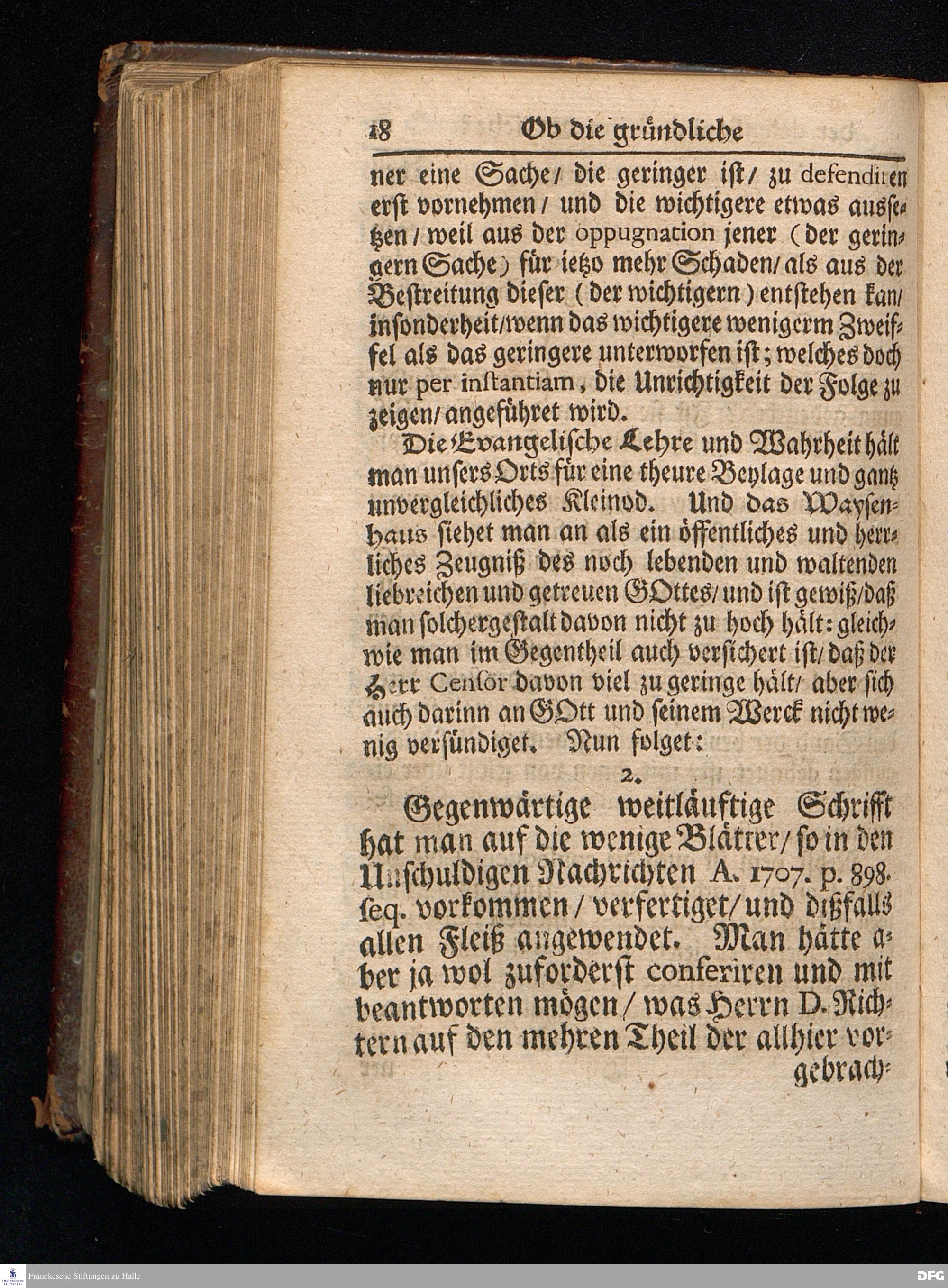 Segens=volle Fußstapfen des noch lebenden und waltenden liebreichen und getreuen GOttes / Zur Beschämung des Unglaubens und Stärckung des Glaubens entdecket durch eine wahrhafte und umständliche Nachricht von dem Wäysen=Hause und übrigen Anstalten zu Glaucha vor Halle: Welche im Jahr 1701. zum Druck befördert; ietzo aber zum dritten mal ediret / und bis auf gegenwärtiges Jahr fortgesetzet von August.Herm.Francken / S.Theol.Prof.und Past. Halle / in Verlegung des Wäysen=hauses / MDCCIX.