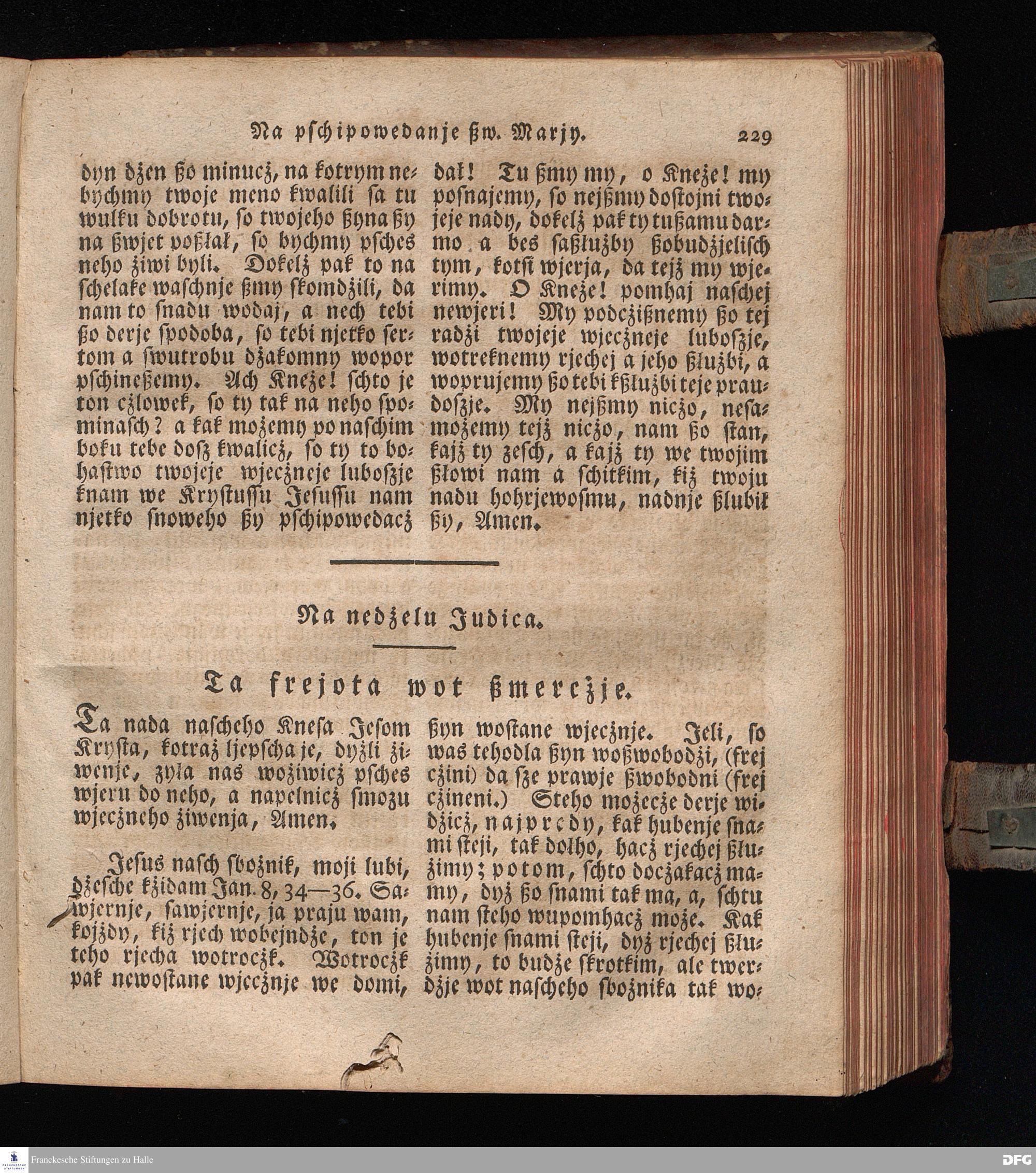Prjedowanja na nedzelje a ßwjate dny, dzerzane a we njemskej reczi wohndate wot Knesa August Herrmann Franki [!] ßwojim czaßu Duchomneho w Hali na zyrkwi Ulricha, kotrez je do ßerskej reczje pschelozai Ernst Rychtar, Duchomny Roßaczizy, a czischczecz dal Jan Christian Samuel Pilz, Knihowwjasar Lubiju. w lieczi 1826.