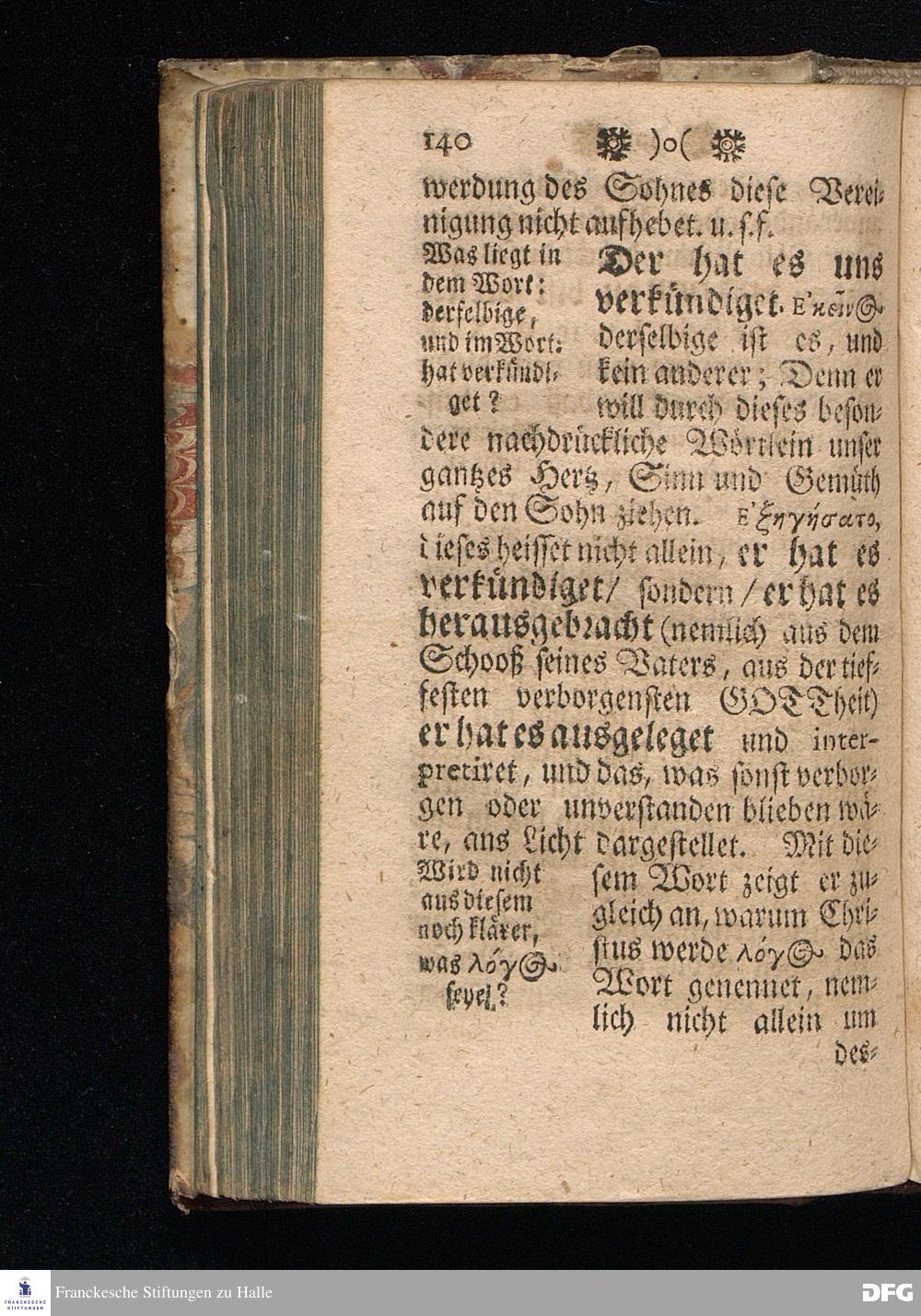 Christus der Kern Heiliger Schrift / Oder Einfältige Anweisung / Wie man CHristum, als den Kern der gantzen H. Schrift, recht suchen, finden, schmäcken, und damit seine Seele nähren, sättigen, und zum ewigen Leben erhalten solle, Worinnen vornemlich der Anfang des Evangelii Johannis durch neun unterschiedene Betrachtungen erläutert, und die wahre wesentliche GOttheit unsers HErrn JEsu CHristi mit klaren Gründen erwiesen wird von August Hermann Francken / S.Th.Pr.& Past.zu S.Ulrich, und des Gymn.Sch. Andere Auflage. HALLE, In Verlegung des Wäysenhauses. MDCCXVI.