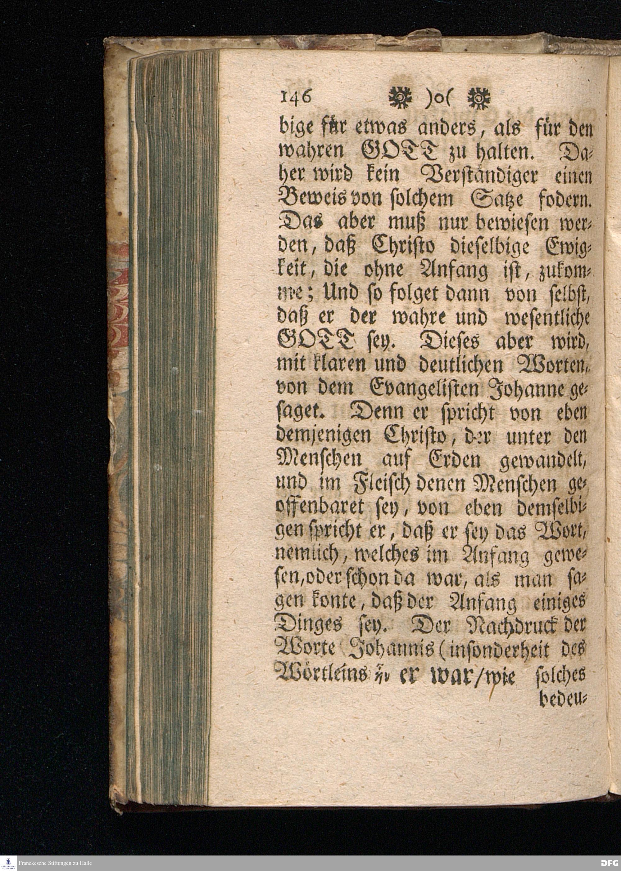 Christus der Kern Heiliger Schrift / Oder Einfältige Anweisung / Wie man CHristum, als den Kern der gantzen H. Schrift, recht suchen, finden, schmäcken, und damit seine Seele nähren, sättigen, und zum ewigen Leben erhalten solle, Worinnen vornemlich der Anfang des Evangelii Johannis durch neun unterschiedene Betrachtungen erläutert, und die wahre wesentliche GOttheit unsers HErrn JEsu CHristi mit klaren Gründen erwiesen wird von August Hermann Francken / S.Th.Pr.& Past.zu S.Ulrich, und des Gymn.Sch. Andere Auflage. HALLE, In Verlegung des Wäysenhauses. MDCCXVI.