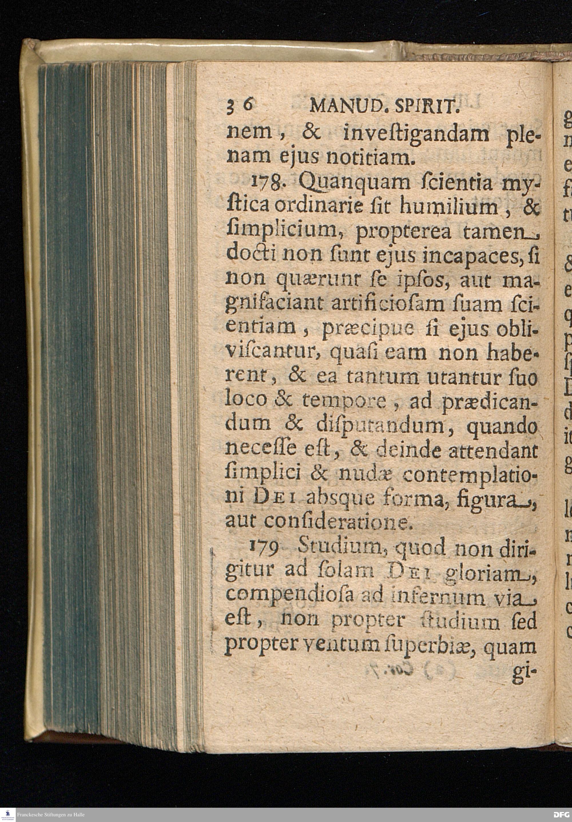 D.MICHAELIS DE MOLINOS, SACERDOTIS, MANUDUCTIO SPIRITUALIS, Extricans animam, eamque perviam interiorem ad acquirendam contemplationis perfectionem, acdivitem pacis interioris thesaurum deducens una cum TRACTATU EJUSDEM De QUOTIDIANA COMMUNIONE, Fideliter & stylo Mysticorum conformiter in latinam lingvam translata A M.AUG.HERMANNO FRANCKIO. Liber, in quo præcipua Eorum, qui vulgo QUIETISTÆ vocantur, DOGMATA declarantur. LIPSIÆ, Sumpt.REINHARDI WÆCHTLER, hactenus Arg.nunc Lips.Bibliopol. MDCLXXXVII.