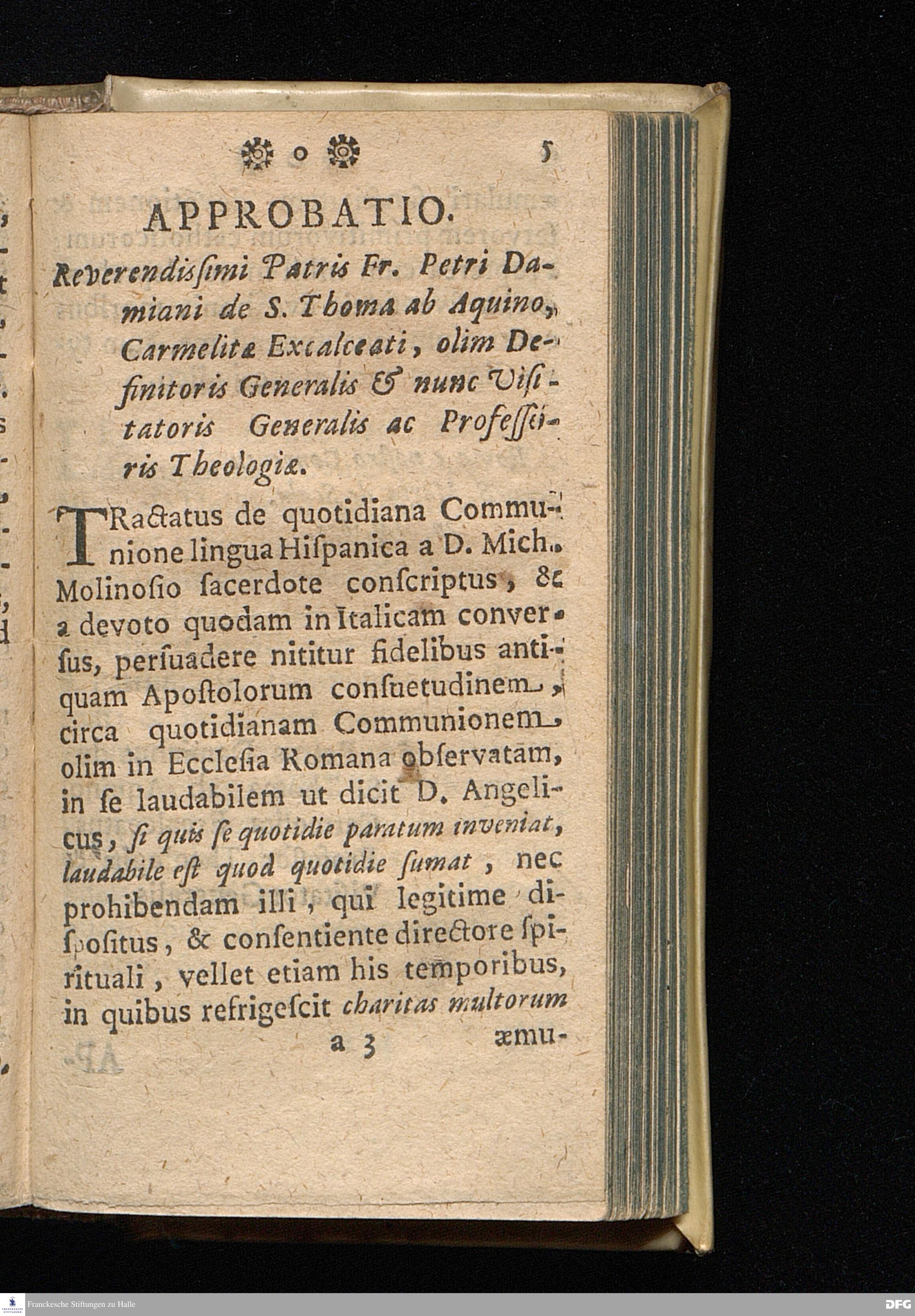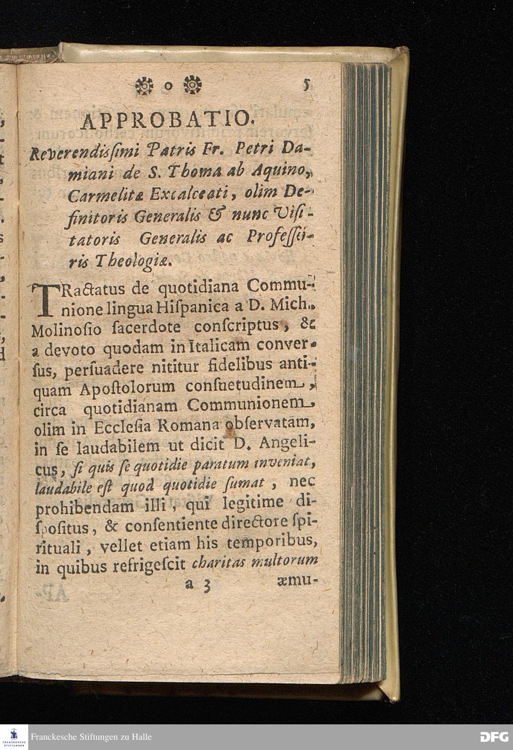 D.MICHAELIS DE MOLINOS, SACERDOTIS, MANUDUCTIO SPIRITUALIS, Extricans animam, eamque perviam interiorem ad acquirendam contemplationis perfectionem, acdivitem pacis interioris thesaurum deducens una cum TRACTATU EJUSDEM De QUOTIDIANA COMMUNIONE, Fideliter & stylo Mysticorum conformiter in latinam lingvam translata A M.AUG.HERMANNO FRANCKIO. Liber, in quo præcipua Eorum, qui vulgo QUIETISTÆ vocantur, DOGMATA declarantur. LIPSIÆ, Sumpt.REINHARDI WÆCHTLER, hactenus Arg.nunc Lips.Bibliopol. MDCLXXXVII.