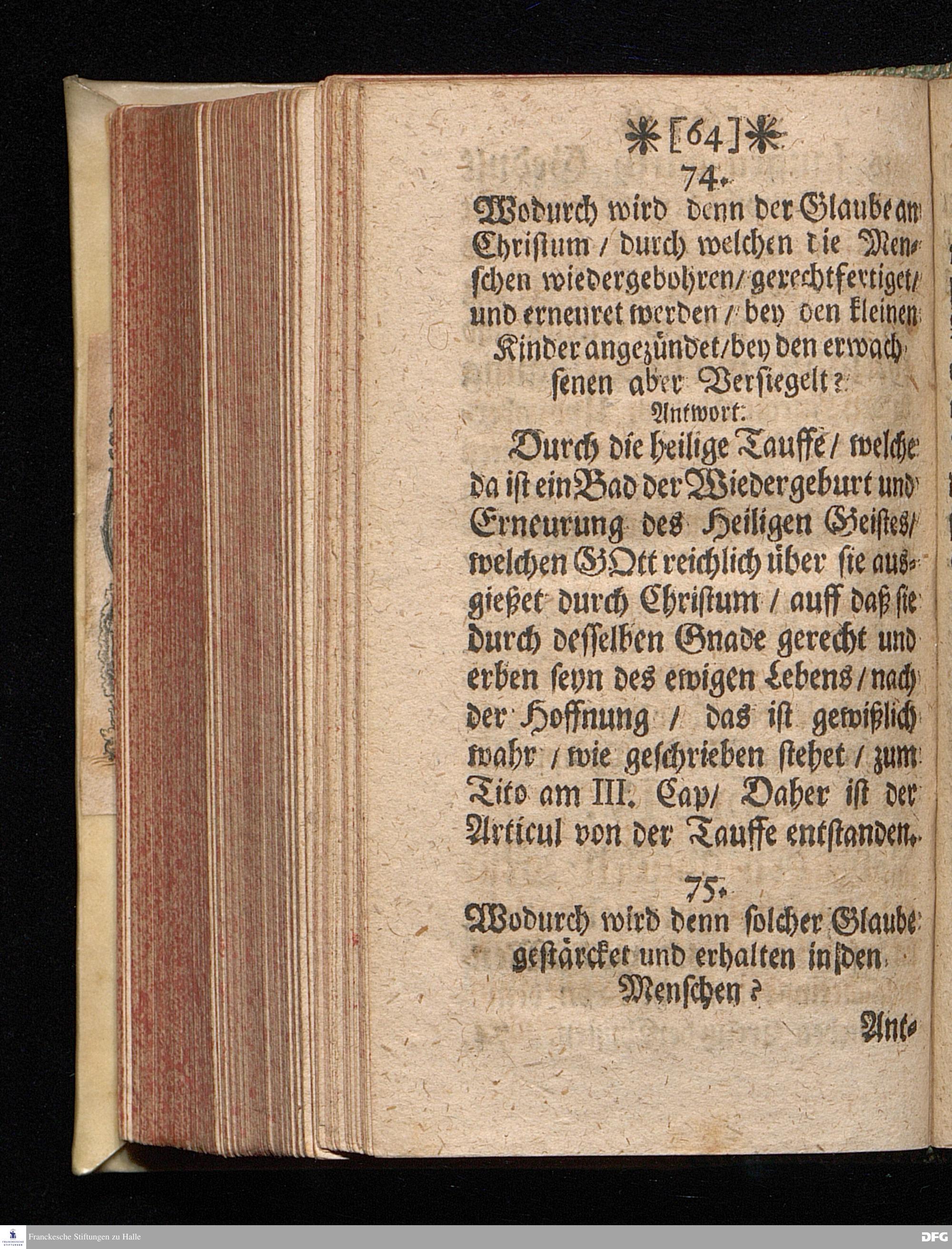 Die Haupt=Summa Der Christlichen Lehre / Zu einem kurtzen / iedoch deutlichen / gründlichen und ordentlichen Begriff aller Glaubens=Artickel in Frage und Antwort verfasset von M.Johan.Hieronymo Wiegeleben / Subconrectore zu Gotha. Nebst Einem Vorbericht M.Aug.Hermann Franckens / Gr.& OO.LL.P.P.& Past. HALLE / Zu finden bey Joh.Jacob Schützen.