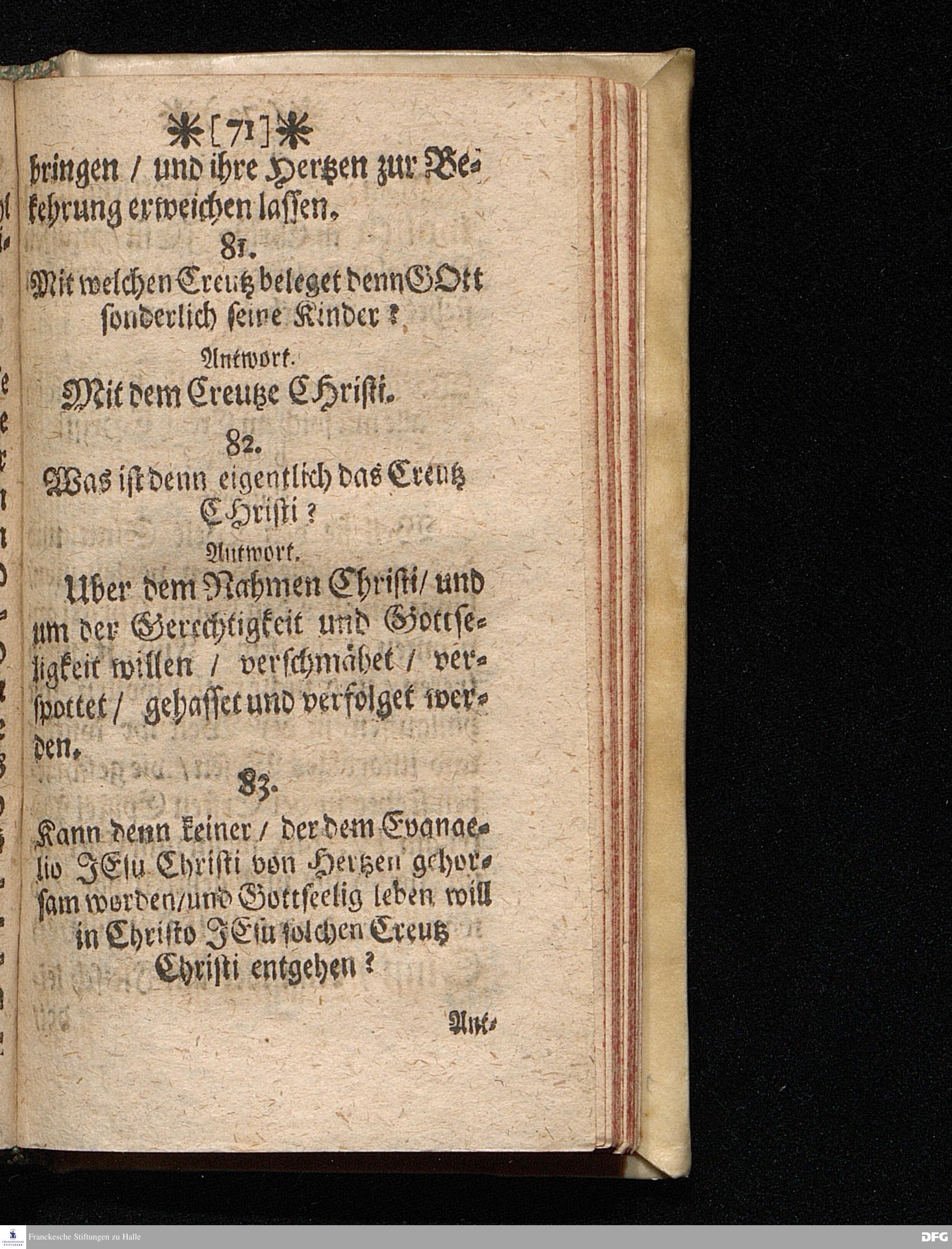 Die Haupt=Summa Der Christlichen Lehre / Zu einem kurtzen / iedoch deutlichen / gründlichen und ordentlichen Begriff aller Glaubens=Artickel in Frage und Antwort verfasset von M.Johan.Hieronymo Wiegeleben / Subconrectore zu Gotha. Nebst Einem Vorbericht M.Aug.Hermann Franckens / Gr.& OO.LL.P.P.& Past. HALLE / Zu finden bey Joh.Jacob Schützen.