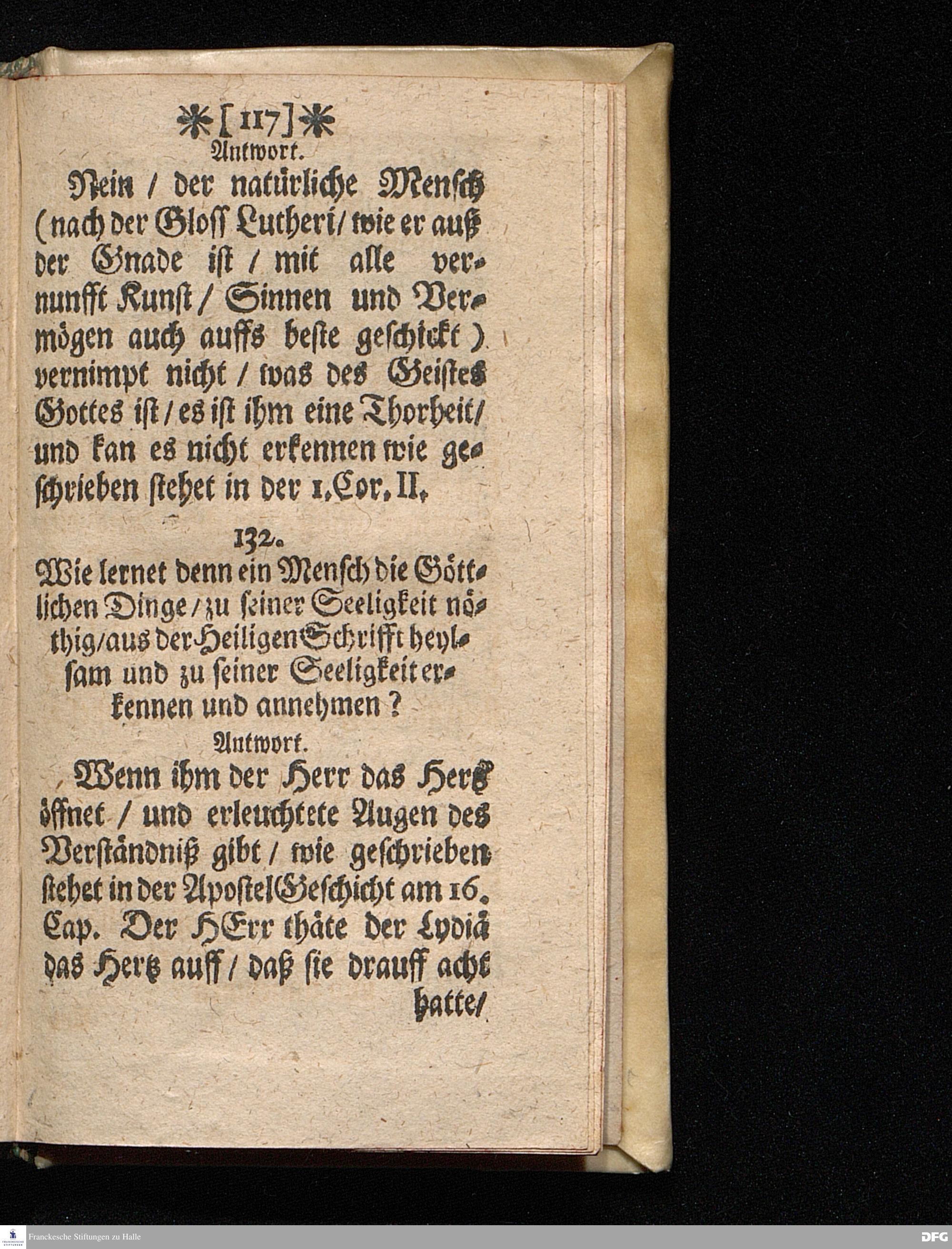 Die Haupt=Summa Der Christlichen Lehre / Zu einem kurtzen / iedoch deutlichen / gründlichen und ordentlichen Begriff aller Glaubens=Artickel in Frage und Antwort verfasset von M.Johan.Hieronymo Wiegeleben / Subconrectore zu Gotha. Nebst Einem Vorbericht M.Aug.Hermann Franckens / Gr.& OO.LL.P.P.& Past. HALLE / Zu finden bey Joh.Jacob Schützen.
